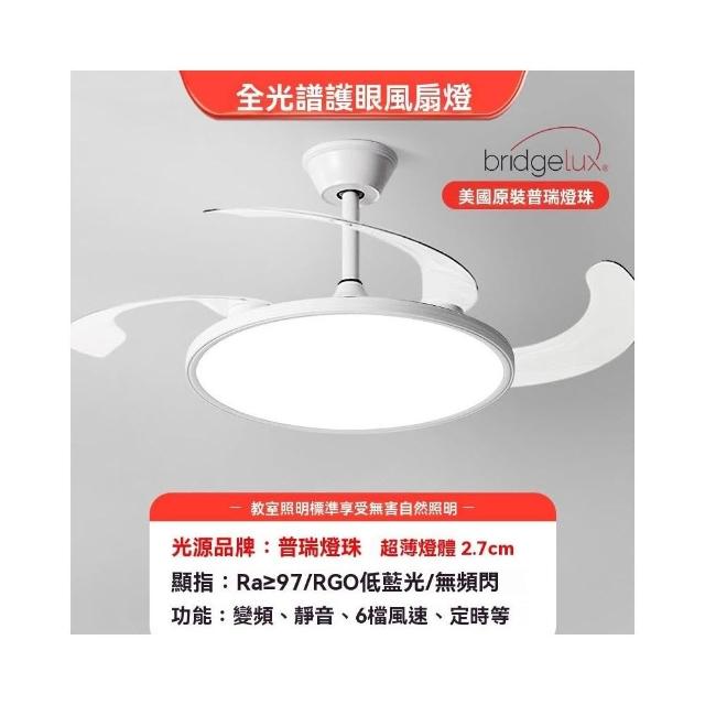 Future Tech 未來科技 【Future Tech】全光譜風扇燈 美國原裝普瑞燈珠 超薄纖薄吊扇燈 低藍光無頻閃 360度環繞式側發光 變頻靜音