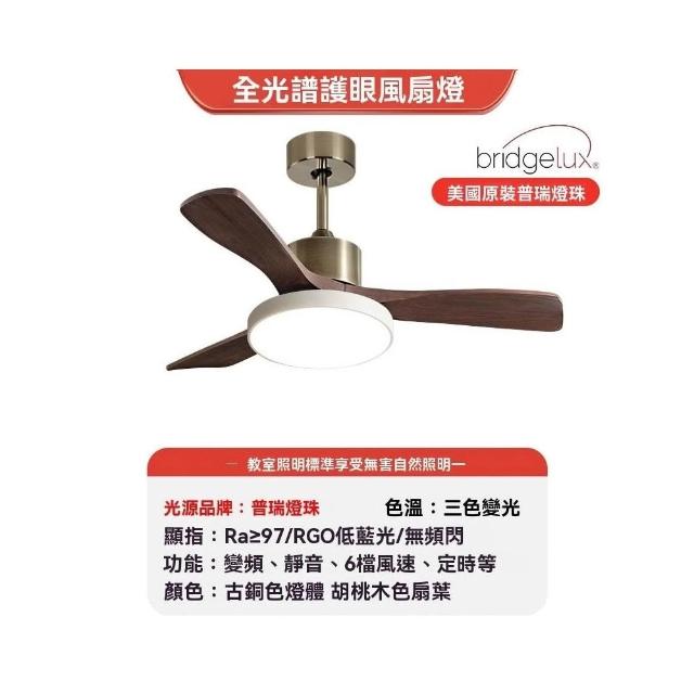 Future Tech 未來科技 全光譜風扇燈 美國原裝普瑞燈珠 低藍光無頻閃 6檔風速 吊頂風扇燈 三色變光