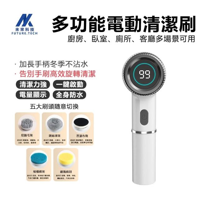 Future Tech 未來科技電動清潔刷 多功能電動刷 一機多用 附多款刷頭 3檔調節 IPX7防水設計