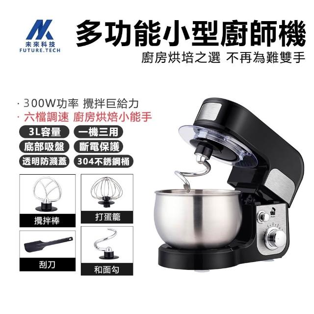 Future Tech 未來科技 廚師機 和麵機 打蛋器 3L攪拌機 6檔調速 304不鏽鋼內桶 抬頭斷電保護
