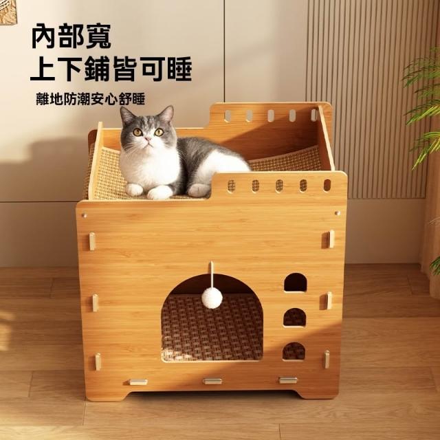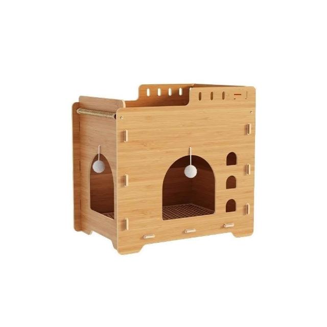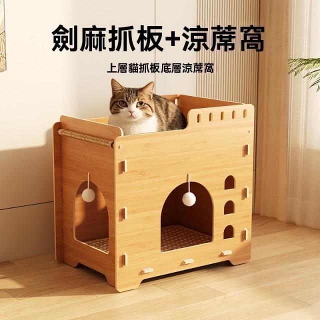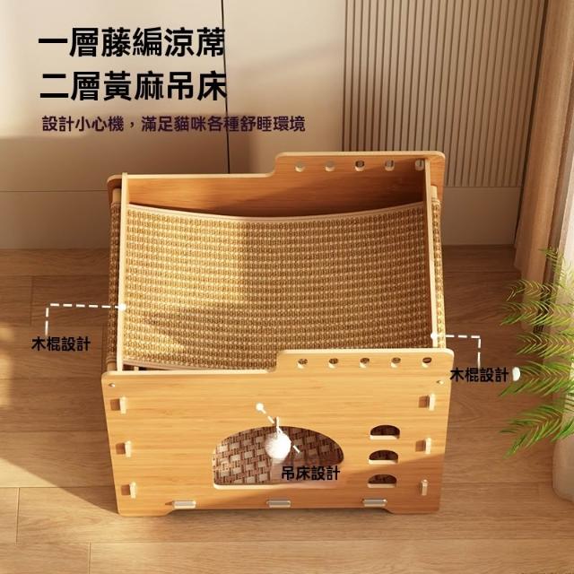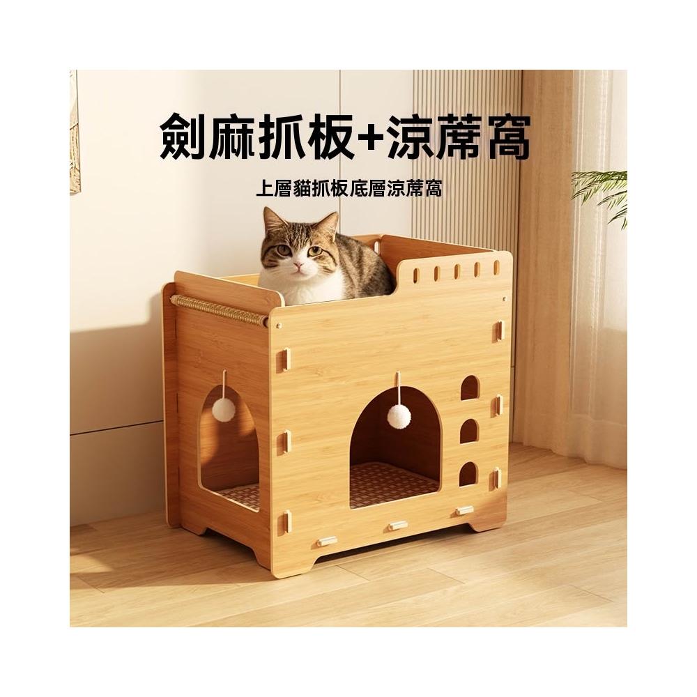 Josogo雙層實木貓別墅 貓窩貓抓板一體 立式劍麻柱 耐磨不掉屑