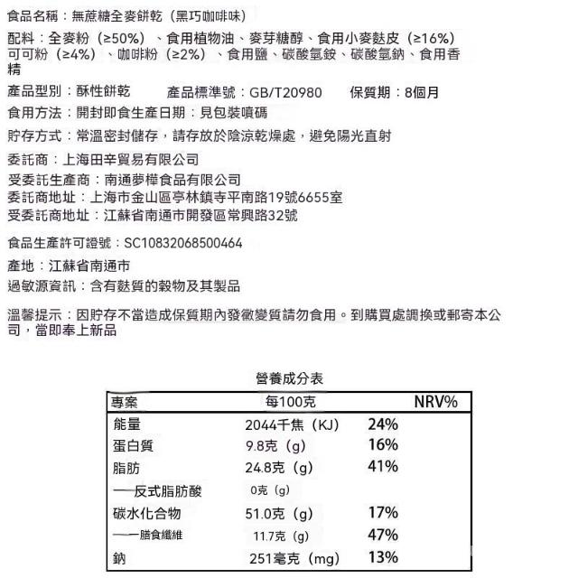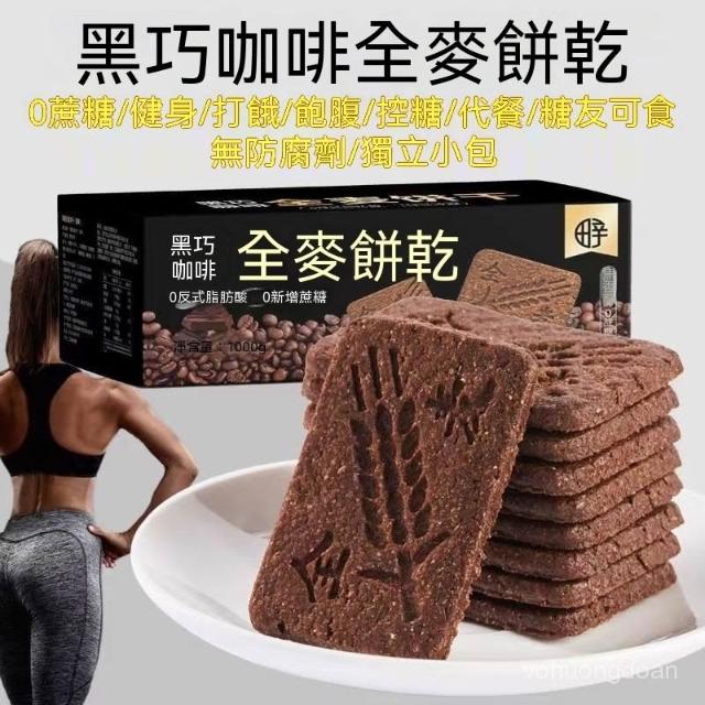 熱賣中 0蔗糖全麥餅乾黑巧克力咖啡粗糧主食抗餓休閒糖友小零食