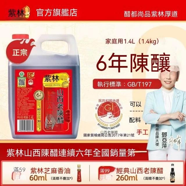 熱賣中嘴饞甄選 紫林6度痠1.4L山西老陳醋傳承傳統手工工藝釀造食醋特産