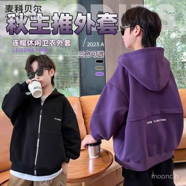 娓精選 【1307人收藏麥科貝爾男童加絨連帽開衫休閒衛衣冬款2025新款男孩外套潮流上衣