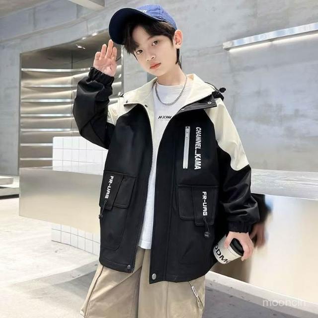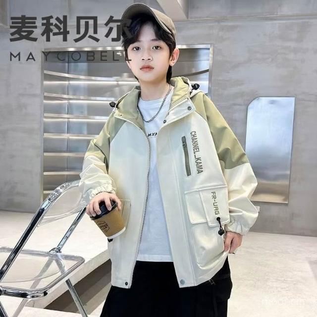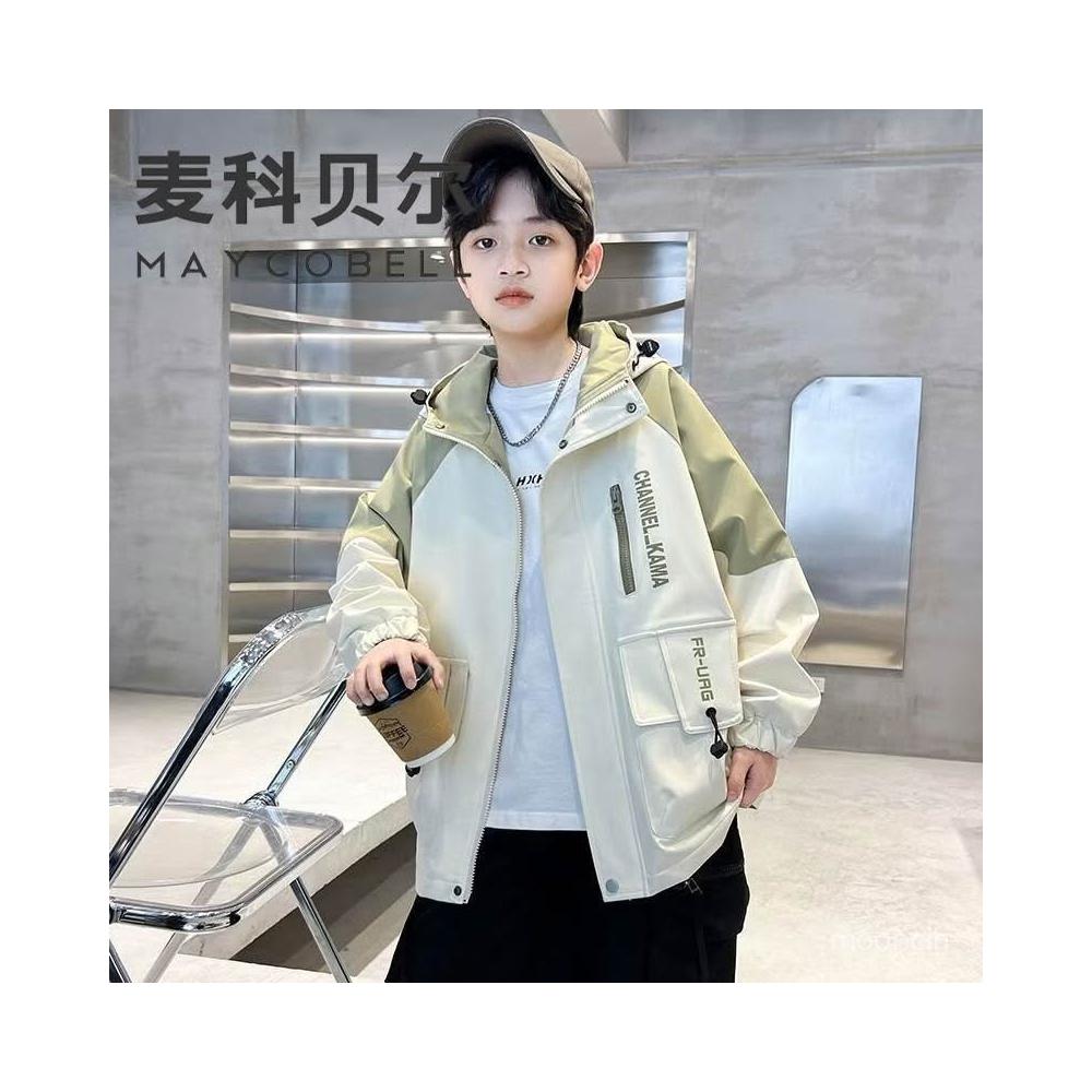 娓娓精選 麥科貝爾男孩休閒外套2024新款男童酷帥中大童春秋款衝鋒衣炸街潮