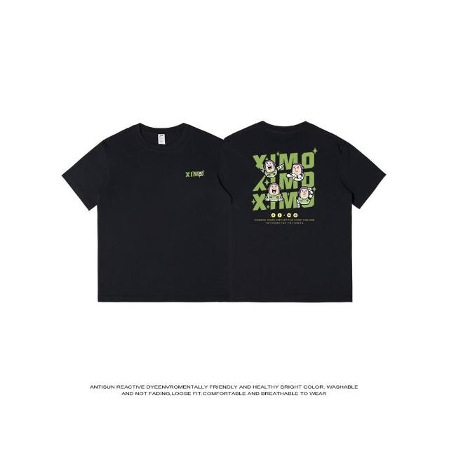 街潮寬鬆男士夏季印花短袖T恤男潮牌美式230g純棉休閒半袖體恤衫