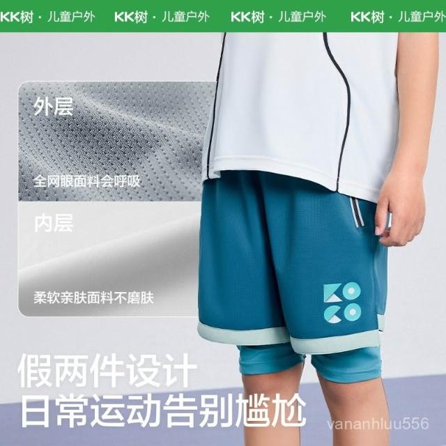 KK樹兒童運動短褲男童夏季童裝戶外薄款寬鬆假兩件透氣速幹五分褲