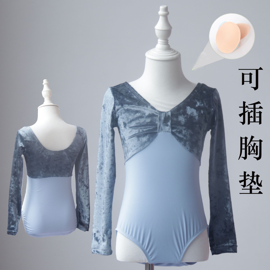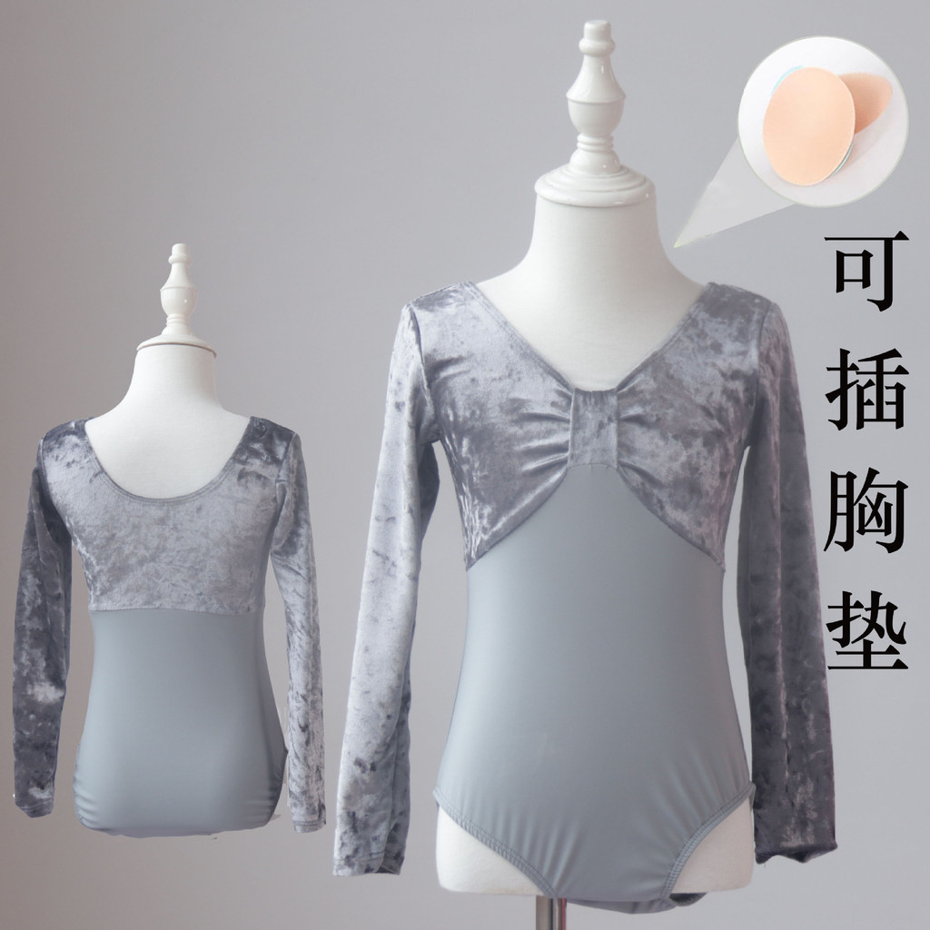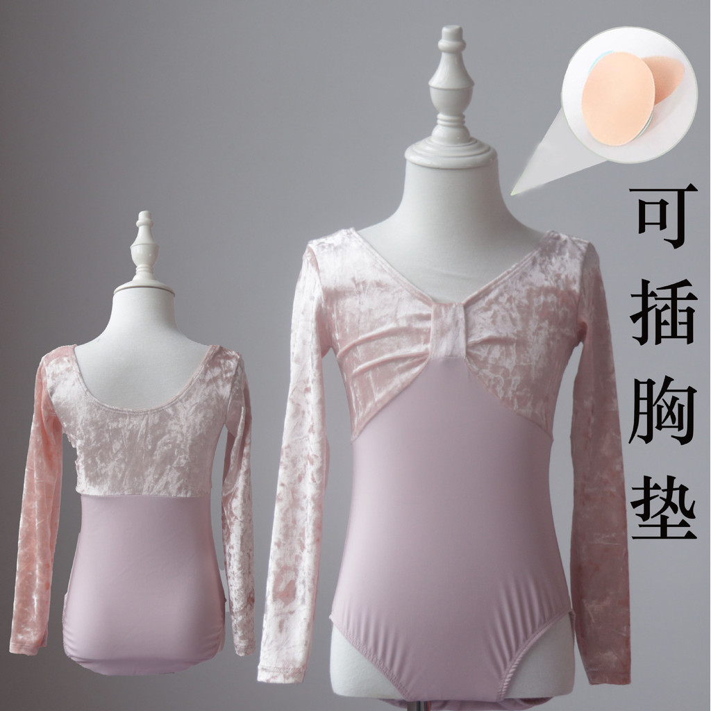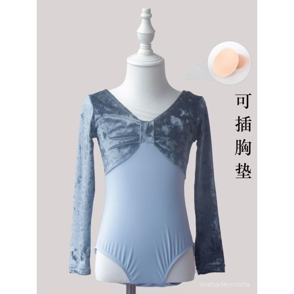 兒童舞蹈服練功服秋冬女童中國舞考級形體絲絨長袖少兒芭蕾舞上衣