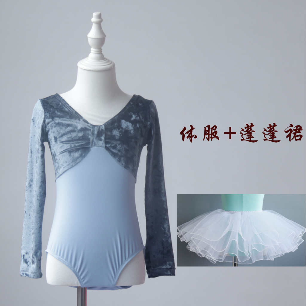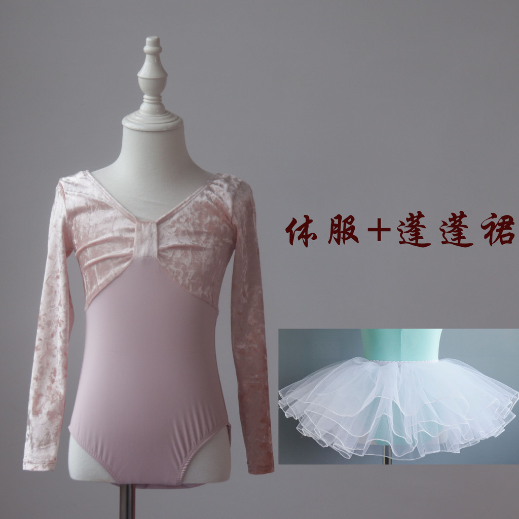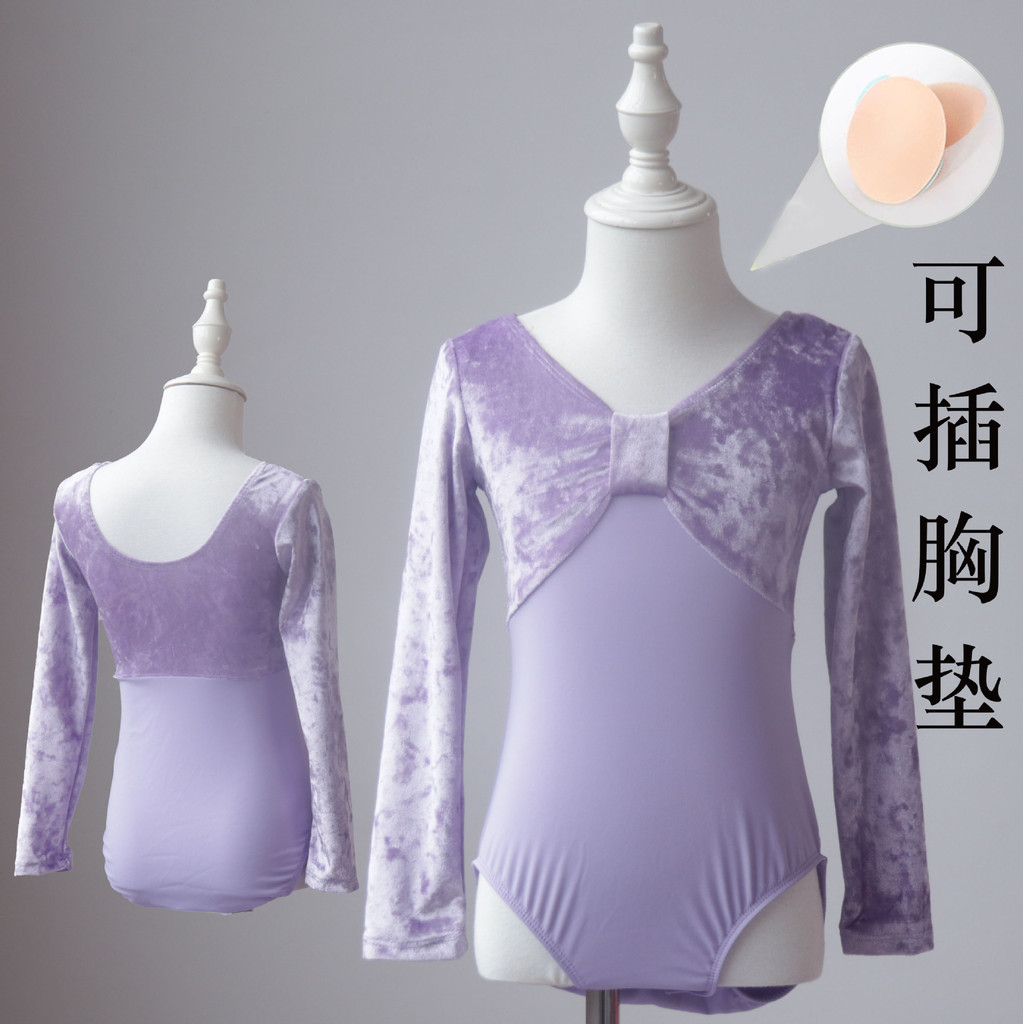 兒童舞蹈服練功服秋冬女童中國舞考級形體絲絨長袖少兒芭蕾舞上衣
