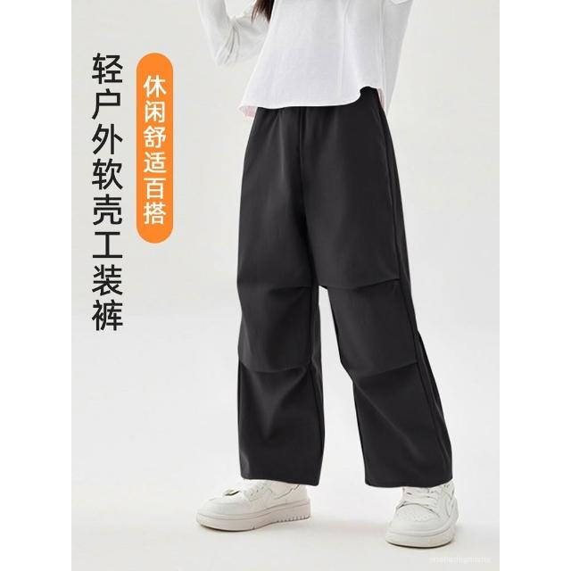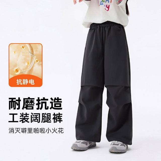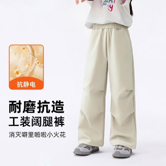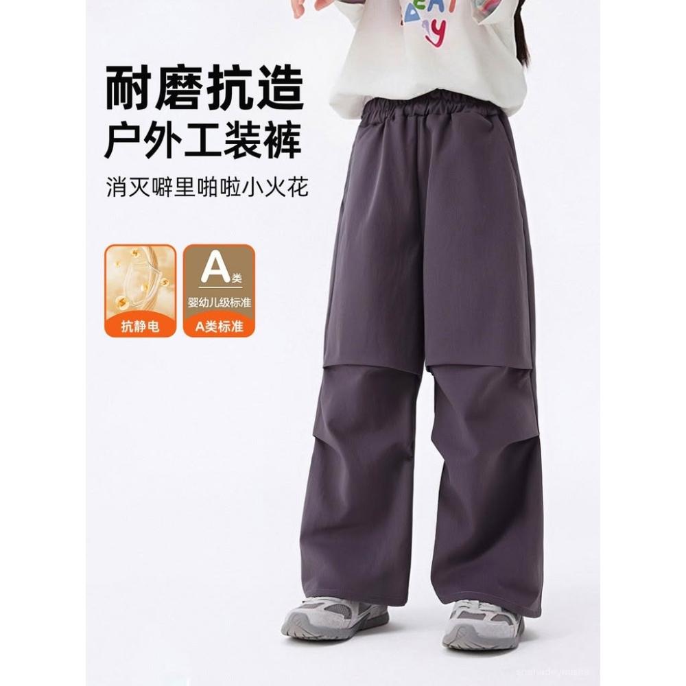高品質女童闊腿褲2025春秋新款童裝傘兵褲兒童洋氣工裝褲中大童直筒長褲