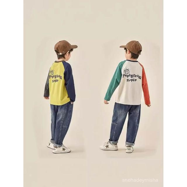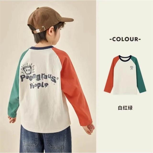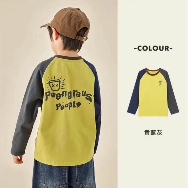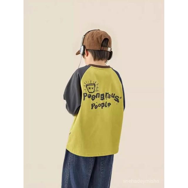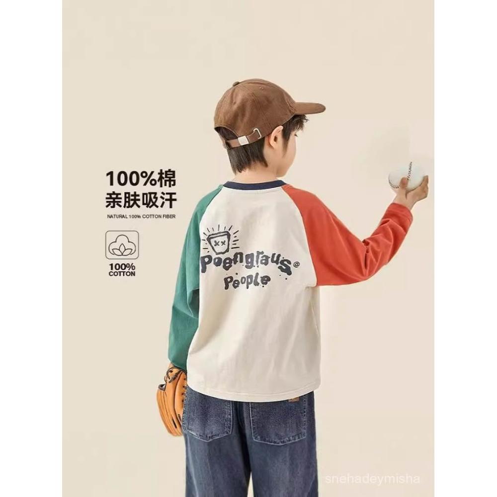 高品質兒童純棉T恤春秋季男童插肩長袖休閒中大童衛衣上衣100%棉