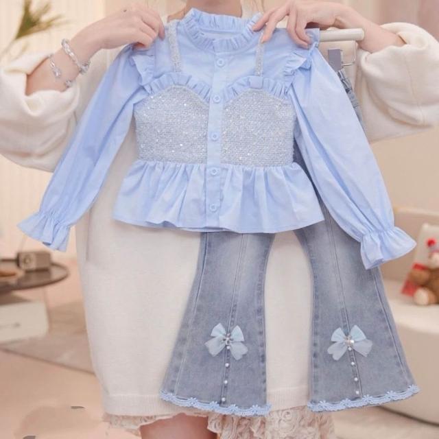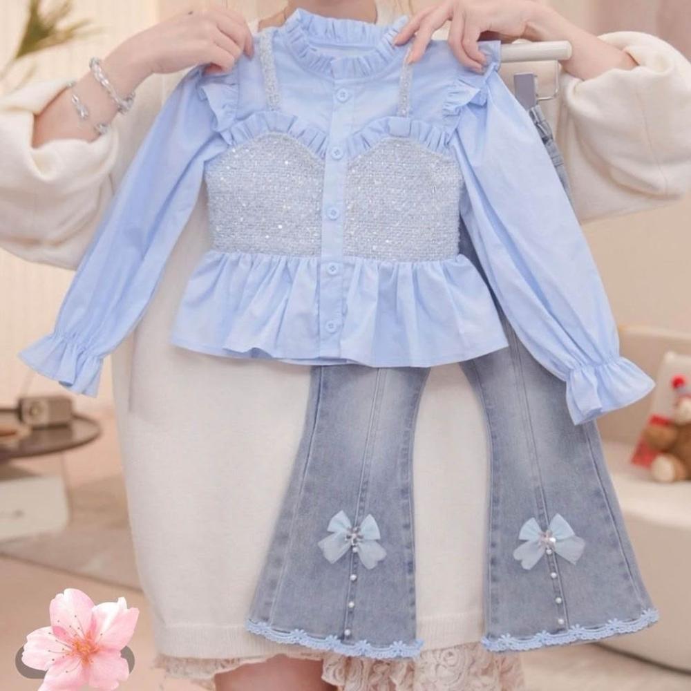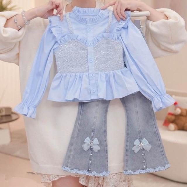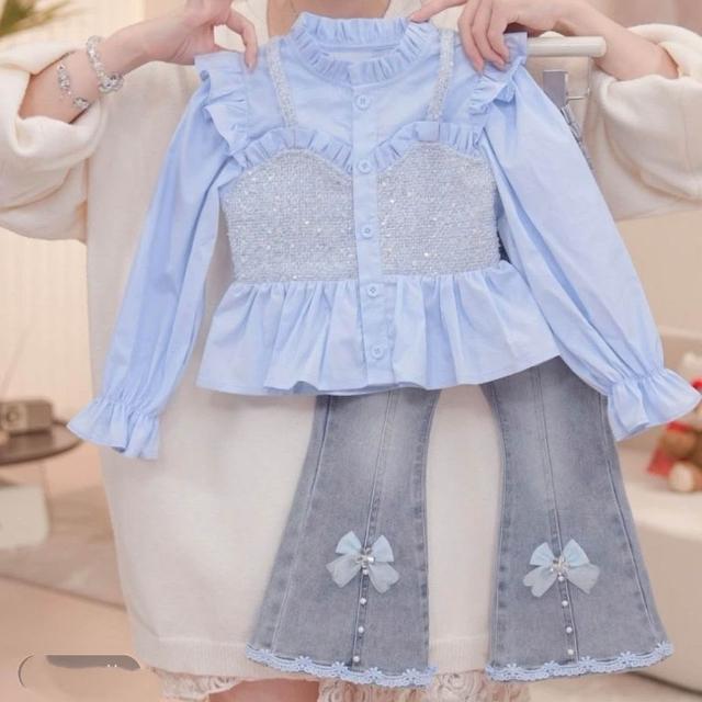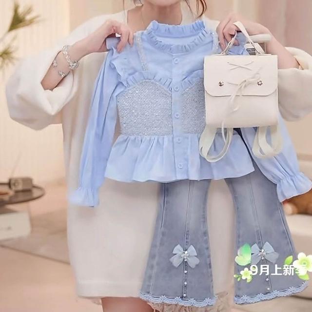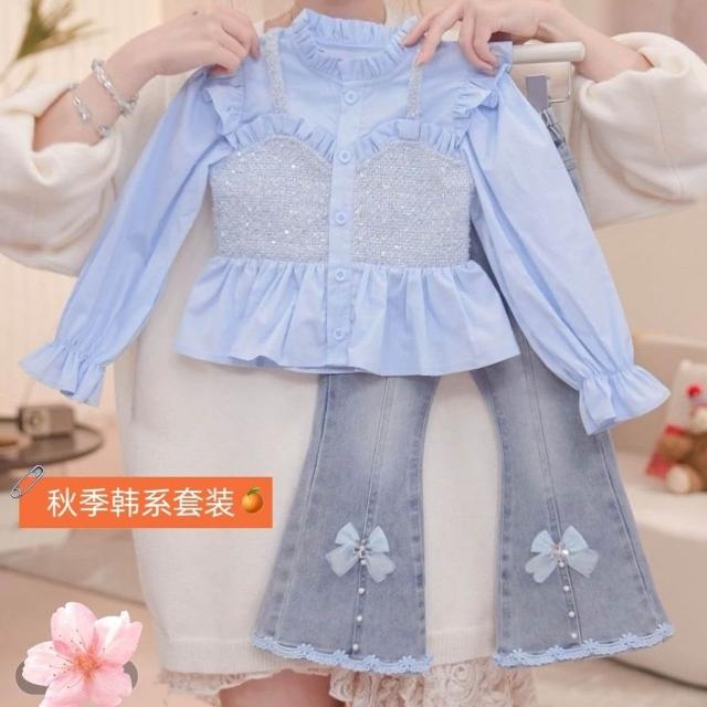 精選女童秋裝穿搭一整套2025新款兒童洋氣襯衫牛仔褲女寶春秋網紅套裝