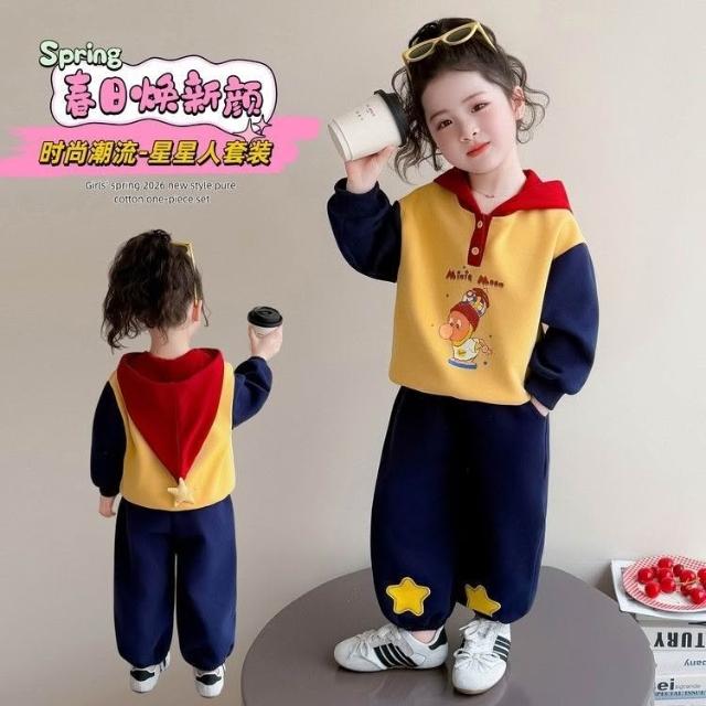 精選女童套裝2026春季新款韓版兒童簡約時尚星星人衛衣寶寶時髦春裝潮