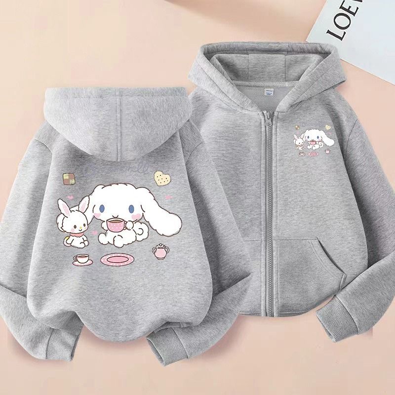 精選女童玉桂狗印花開衫連帽薄衛衣春秋季薄款洋氣中大童兒童拉鍊外套