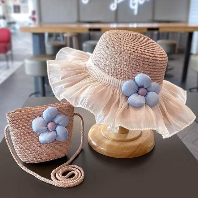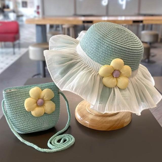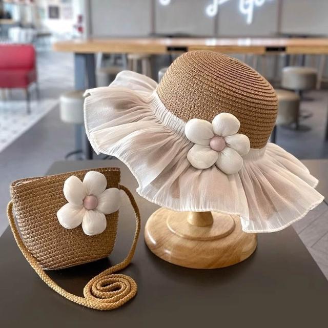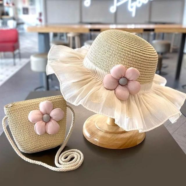 精選|夏天女童遮陽草帽夏季女寶親子沙灘防曬漁夫公主小女孩帽子包包