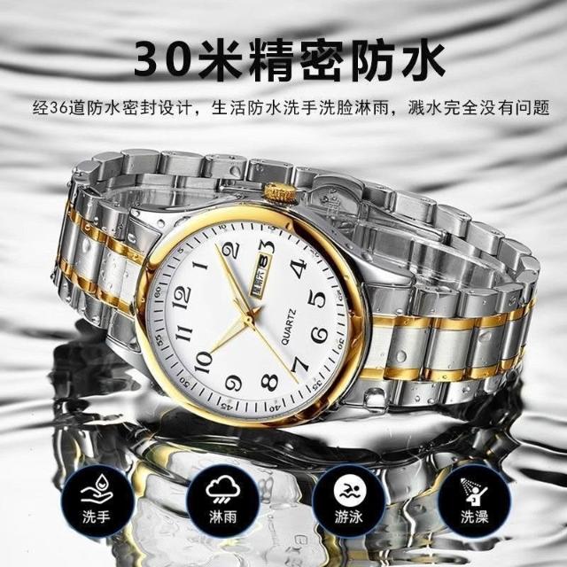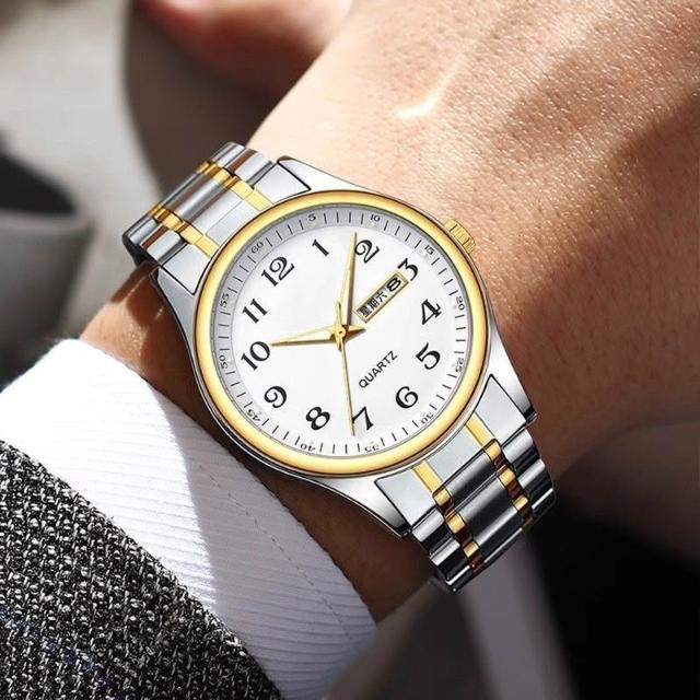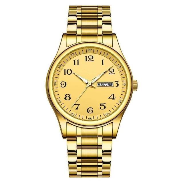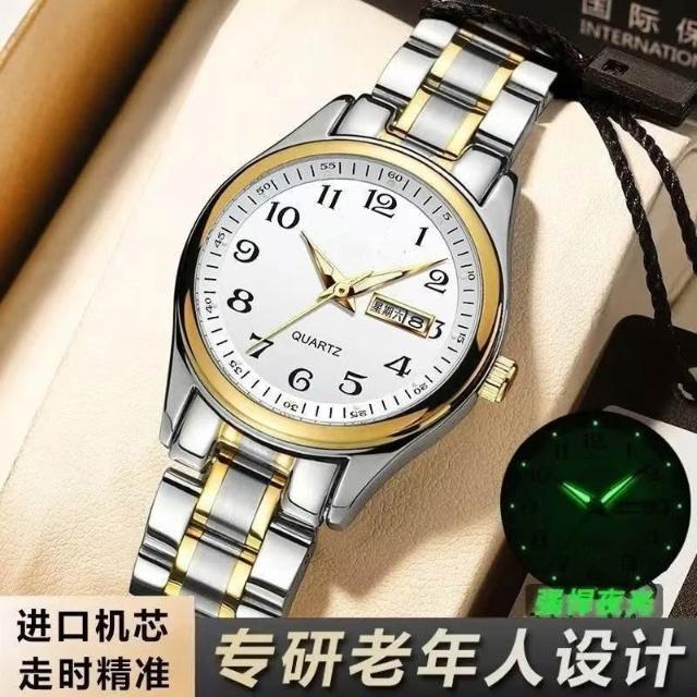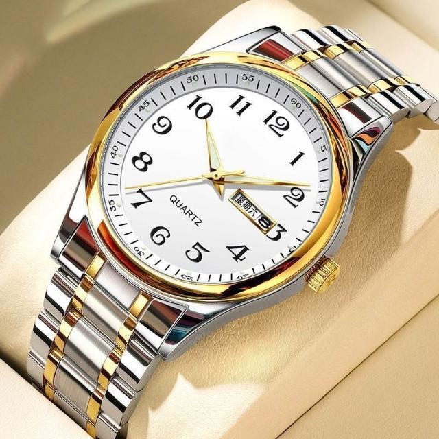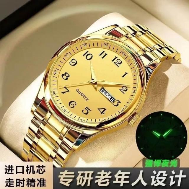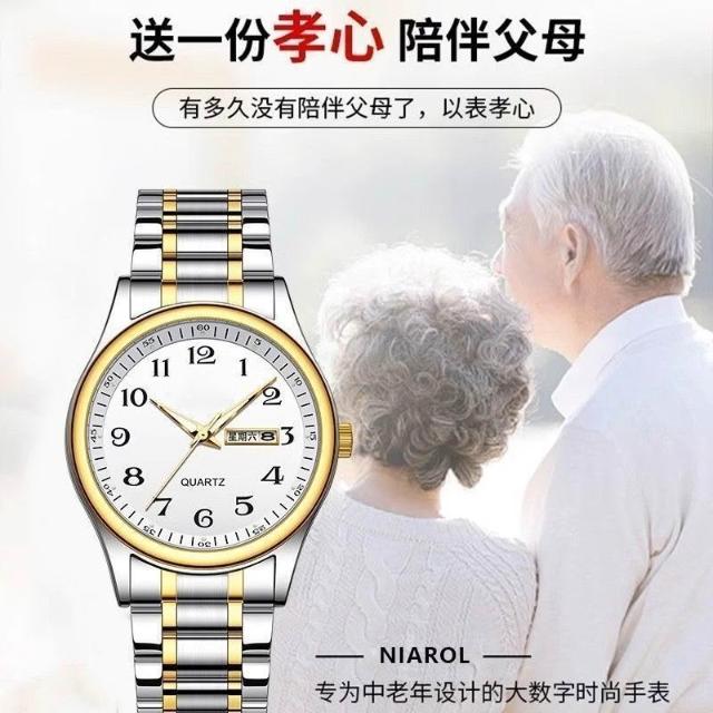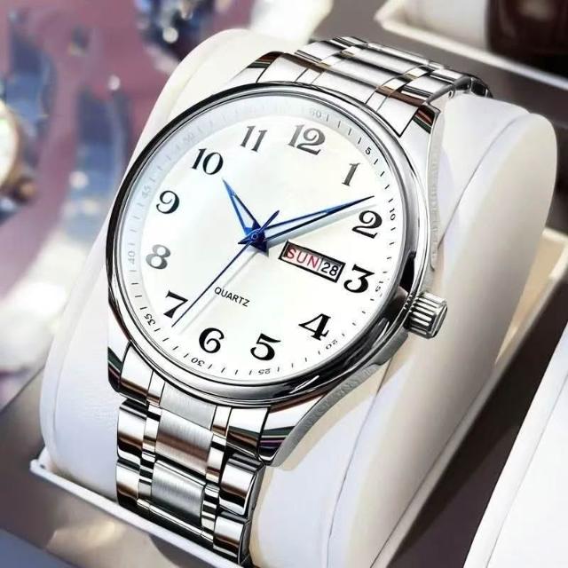 明明嚴選【48小時內發貨】簡約大數字表盤手錶男款防水雙日曆夜光高檔中老年人鋼帶石英...