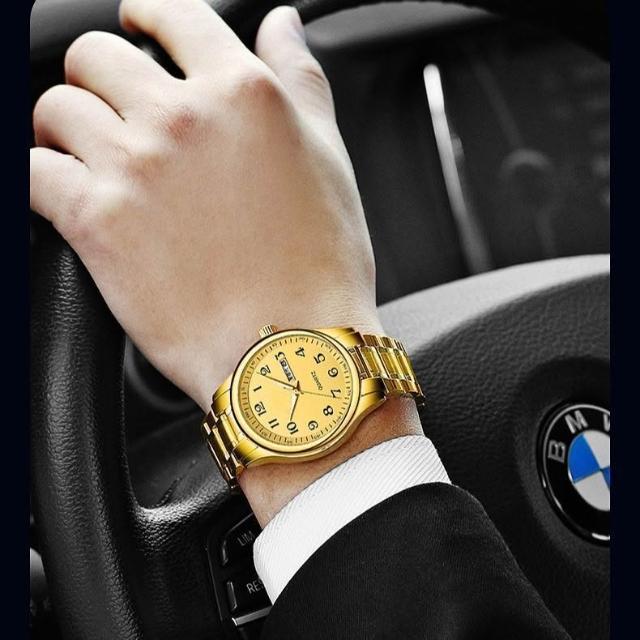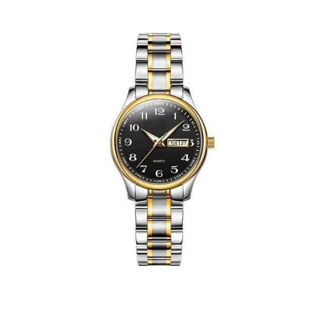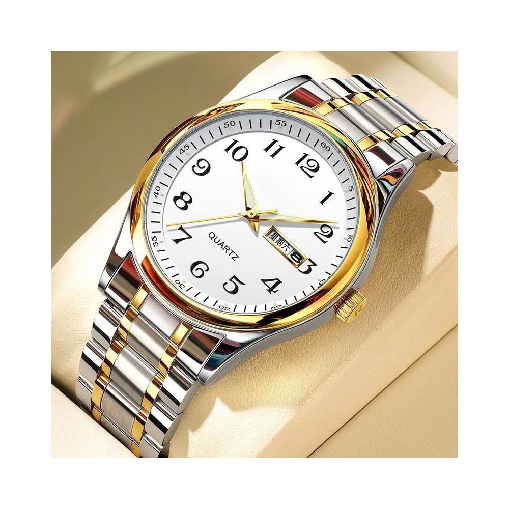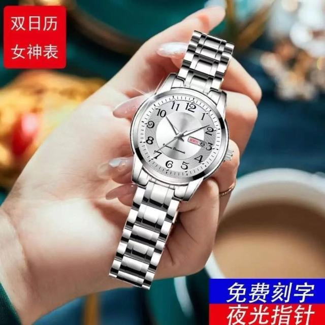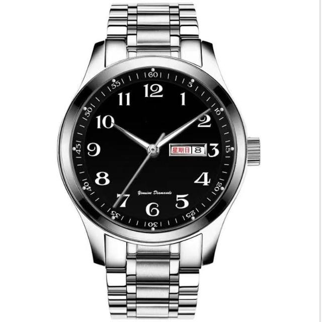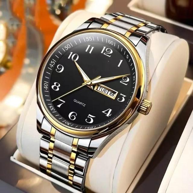 明明嚴選【48小時內發貨】簡約大數字表盤手錶男款防水雙日曆夜光高檔中老年人鋼帶石英...