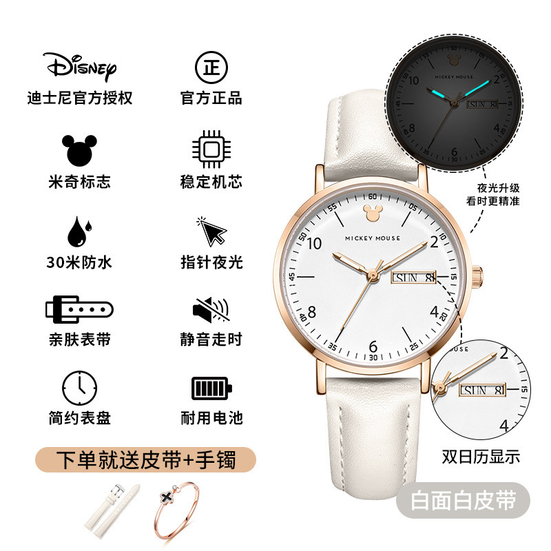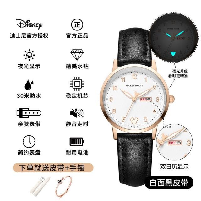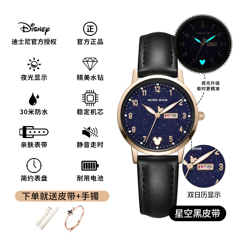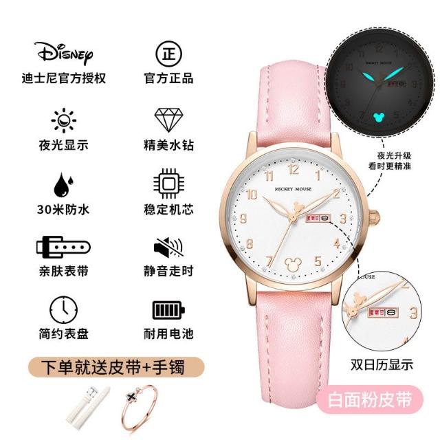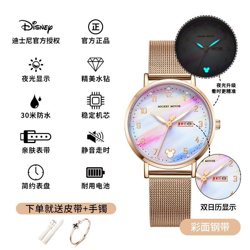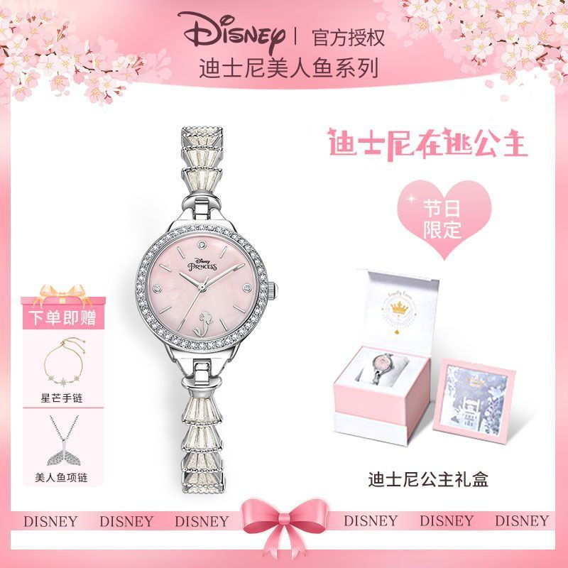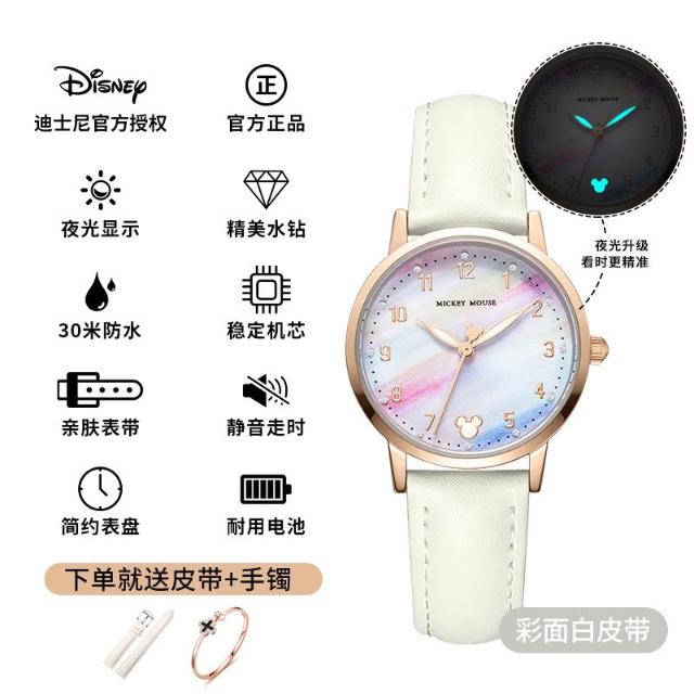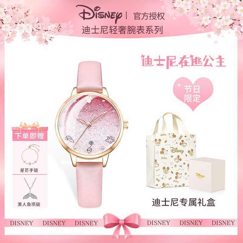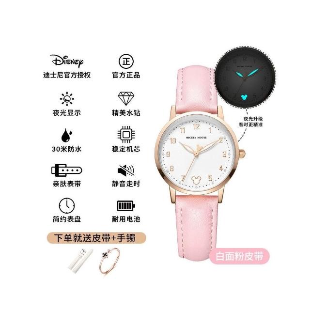 小林甄選 迪士尼手錶女生簡約新款可愛公主夜光防水高顔值初高中學生手錶女
