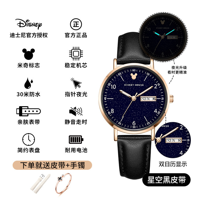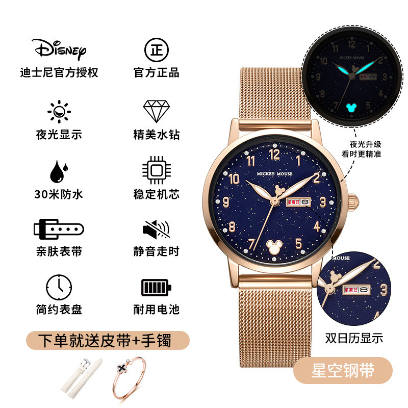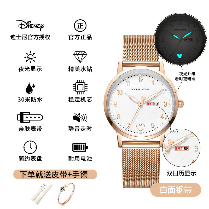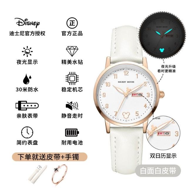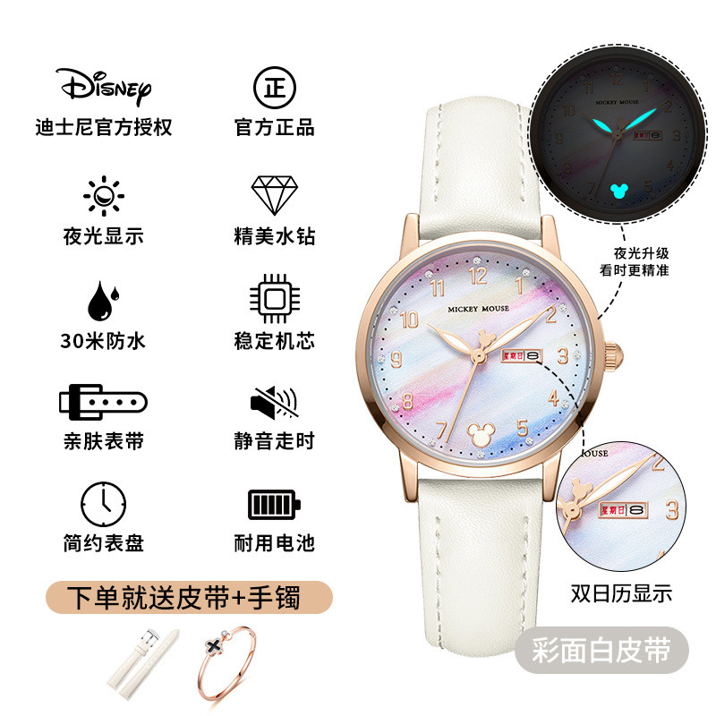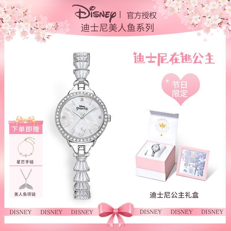 小林甄選 迪士尼手錶女生簡約新款可愛公主夜光防水高顔值初高中學生手錶女