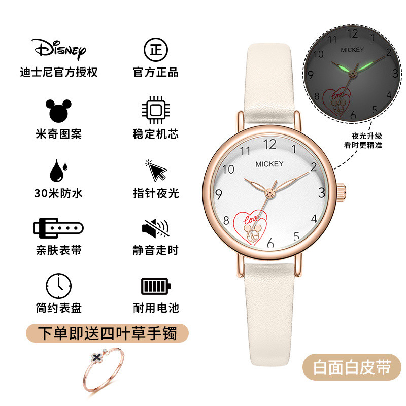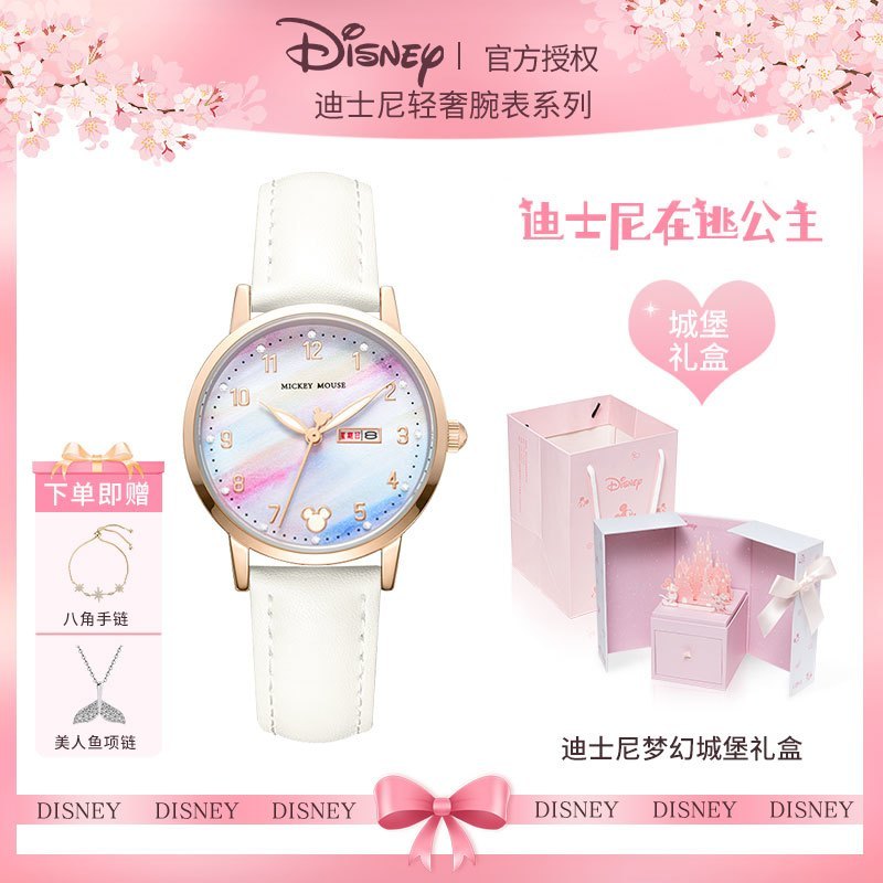 小林甄選 迪士尼手錶女生簡約新款可愛公主夜光防水高顔值初高中學生手錶女