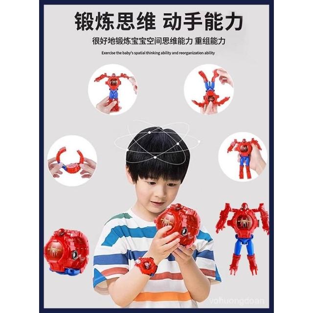 新新手錶 奧特曼蜘蛛俠兒童變形手錶男童卡通變形金剛投影玩具髮光電子手錶