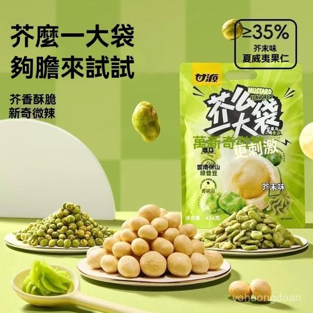 熱賣中 甘源芥末味零食任選芥末味夏威夷果仁芥末味青豌豆綠蠶豆禮包組閤