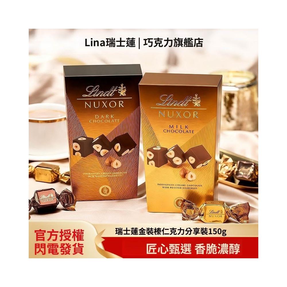 Lindt瑞士蓮金裝榛仁夾心堅果黑巧克力150g休閒零食喜糖生日禮物