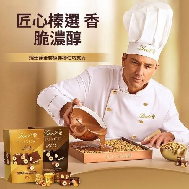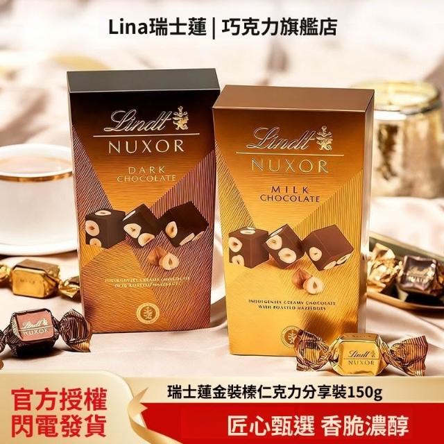 Lindt瑞士蓮金裝榛仁夾心堅果黑巧克力150g休閒零食喜糖生日禮物
