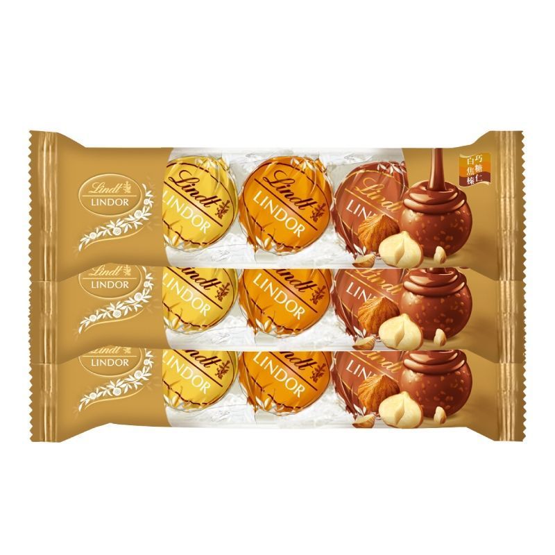 多條裝Lindt瑞士蓮軟心精選巧克力休閒零食喜糖隨享3粒裝36g