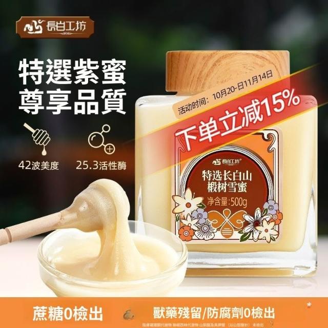 長白工坊 東北長白山椴樹雪蜜 白蜜 結晶蜂蜜 特選椴樹蜜500g/瓶