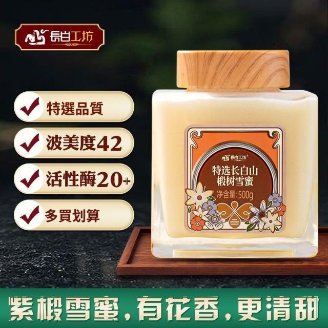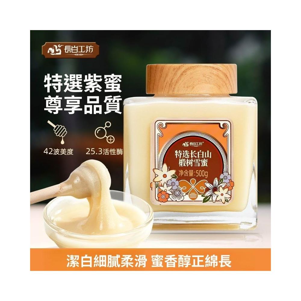 長白工坊 東北長白山椴樹雪蜜 白蜜 結晶蜂蜜 特選椴樹蜜500g/瓶