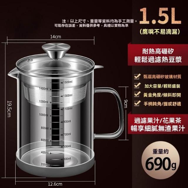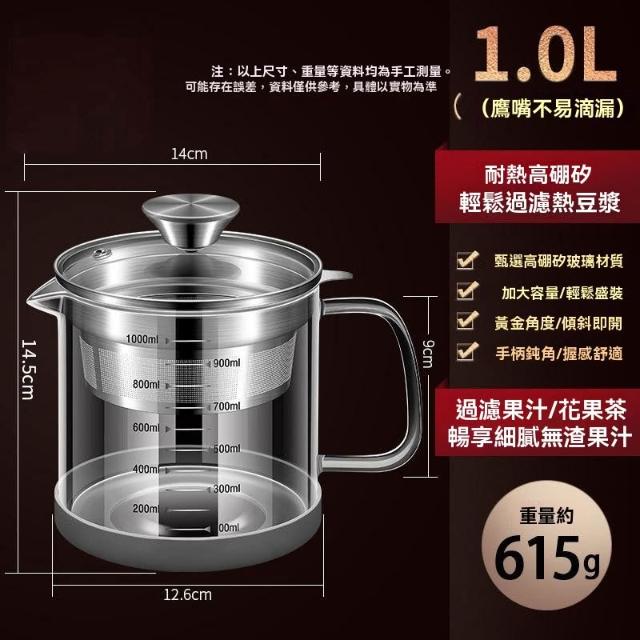 LEZUN 樂尊豆漿過濾神器家用廚房果汁過濾壺大容量帶過濾網泡茶壺玻璃果汁壺