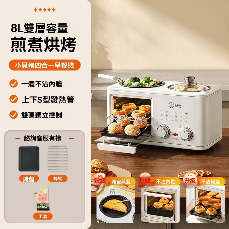 LEZUN 樂尊四合壹早餐機家用多功能煎牛排煎烤蒸煮鍋小烤箱