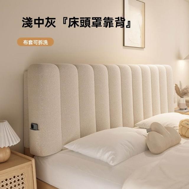 LEZUN 樂尊高級感床頭靠墊泰迪絨改造榻榻米靠枕奶油風床頭軟包靠背墊可拆洗