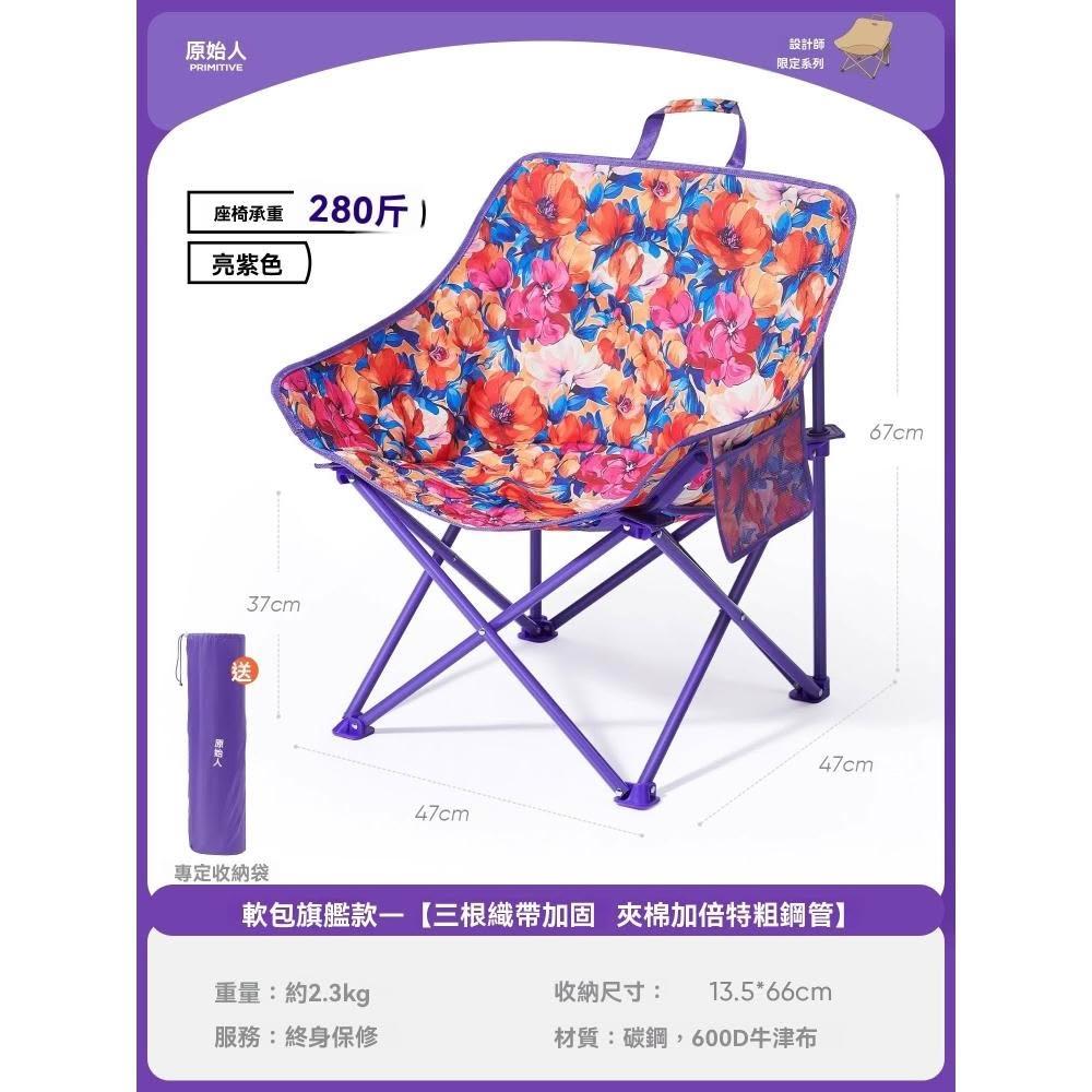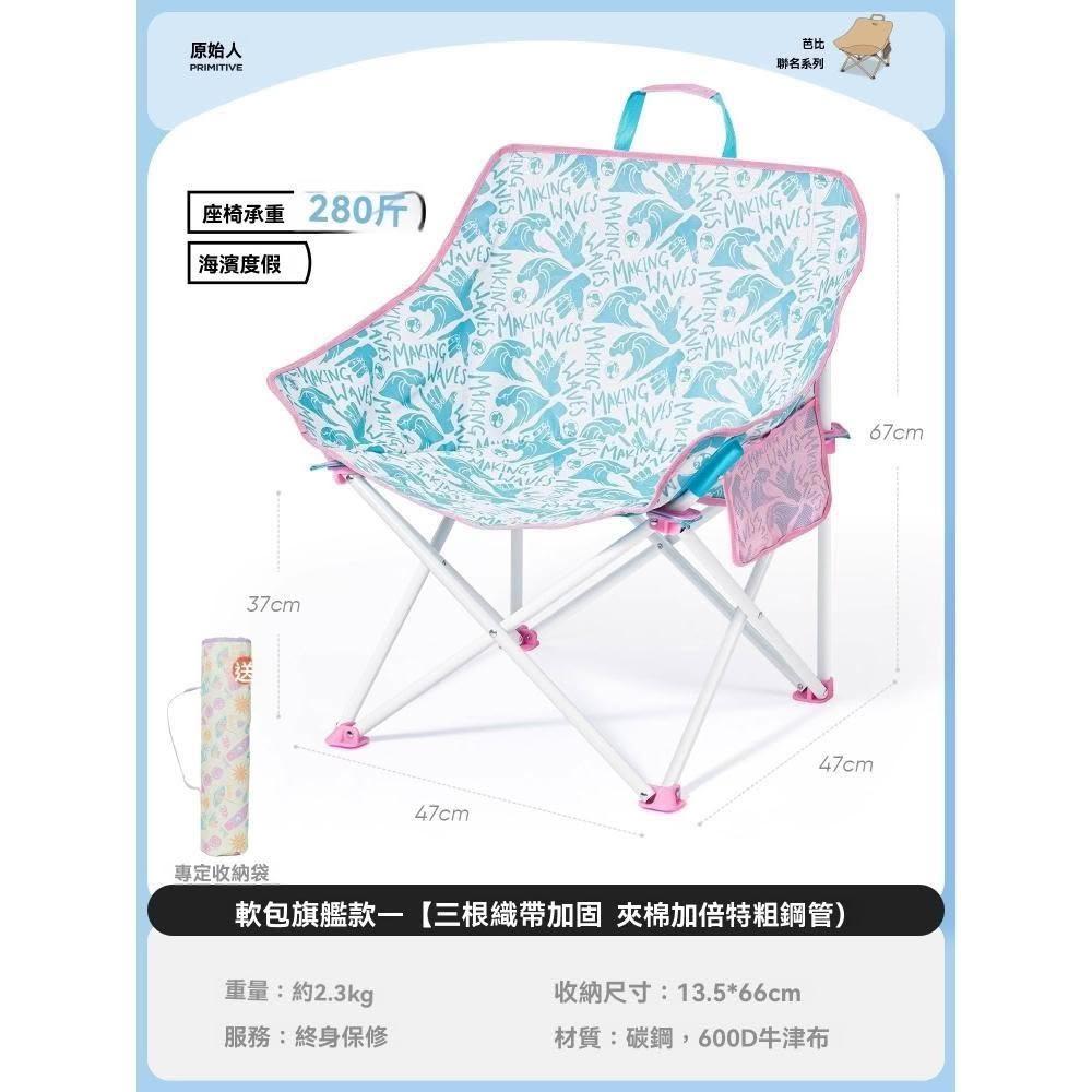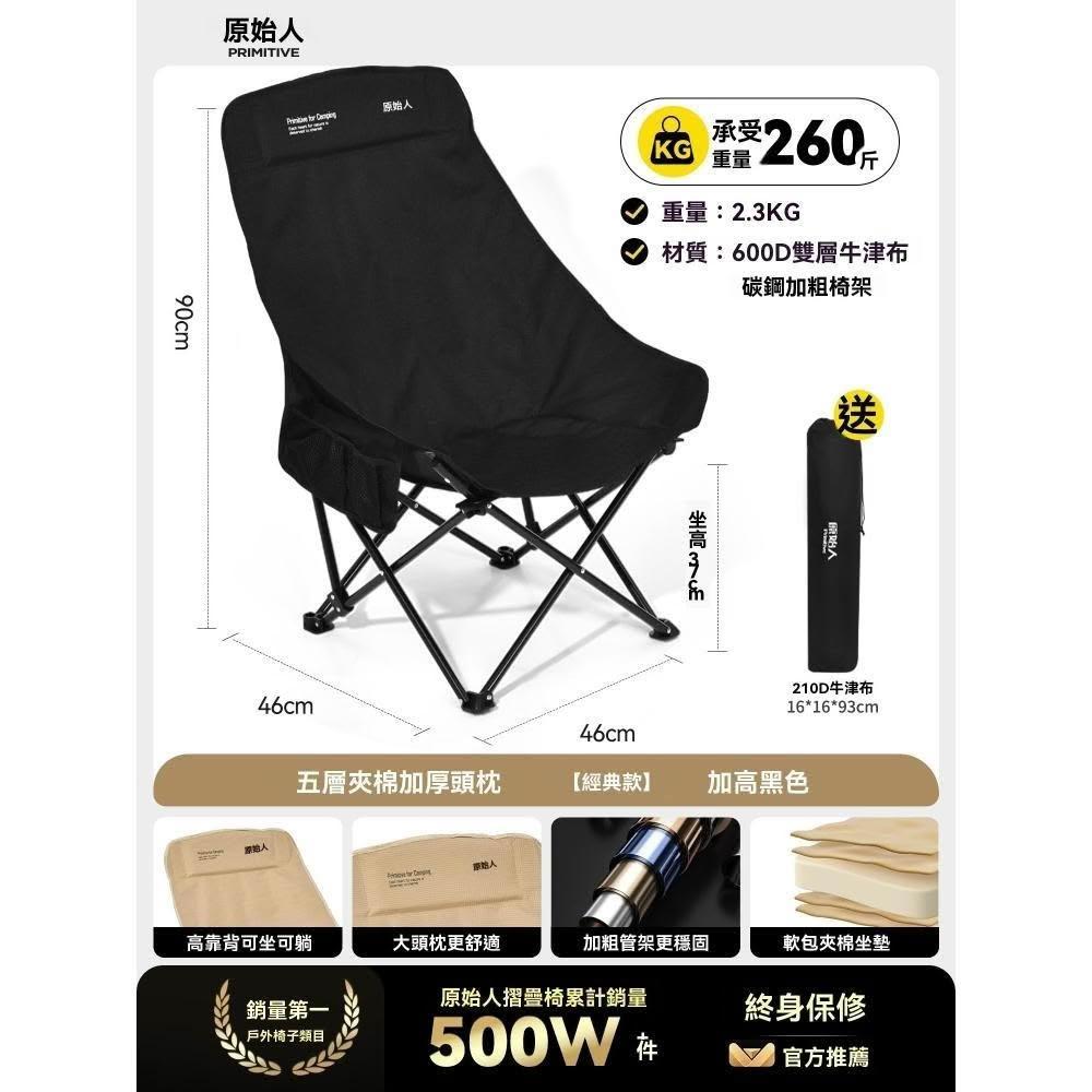 LEZUN 樂尊原始人戶外摺疊椅月亮椅露營椅子便攜式躺椅沙灘釣魚椅凳野餐桌椅