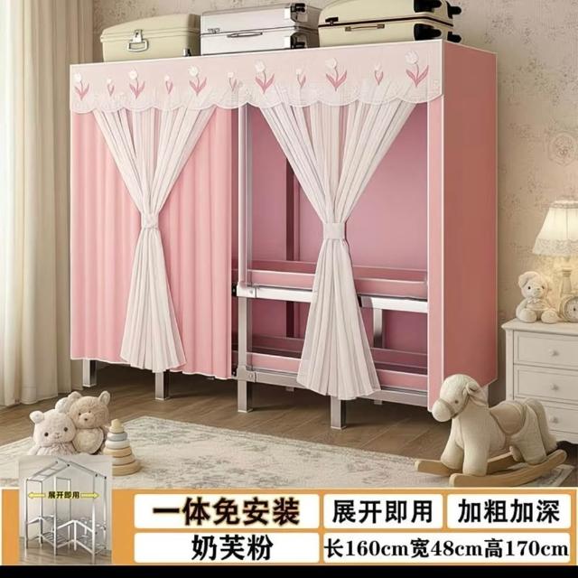LEZUN 樂尊現貨清倉 【160*50*172cm】家用免安裝一體式可折疊全鋼架布衣櫃 簡易衣櫃