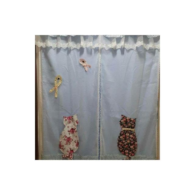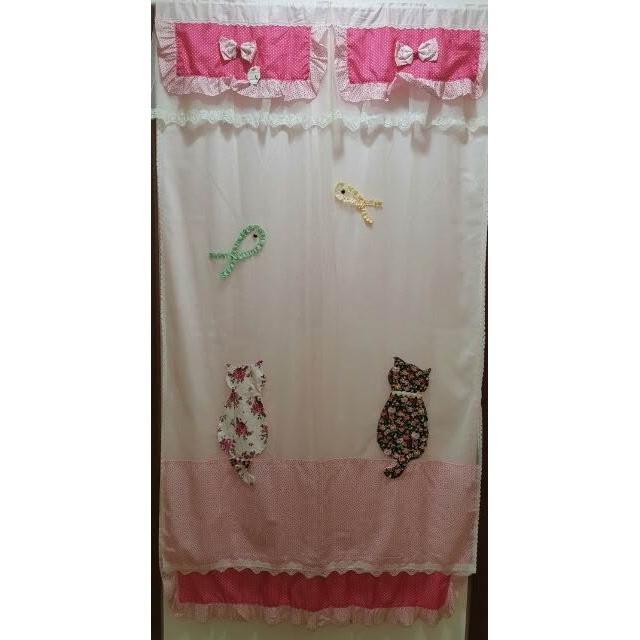 台灣製 拼布鄉村風格門簾雙層蕾絲門簾貓咪門簾門簾門