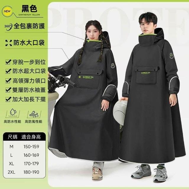 用芯淘耐用時尚雨衣 一體式連身多功能雨衣 防暴雨 防水大口袋 彈性領口 折疊防水手套 M/L/XL