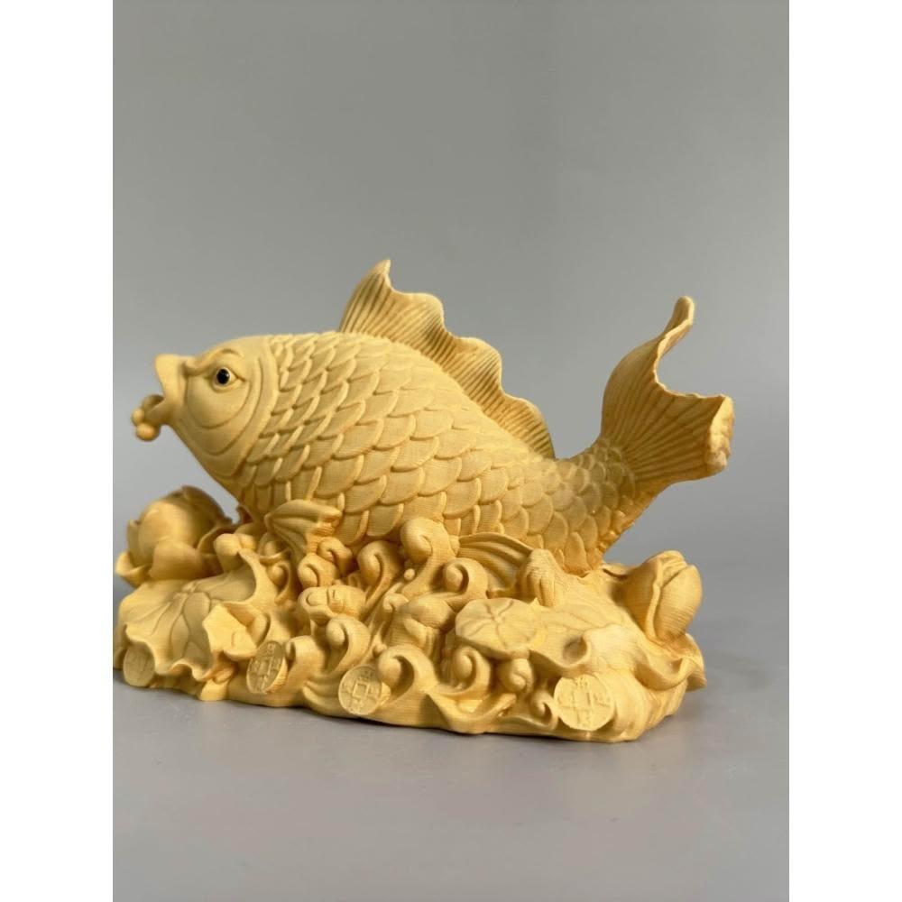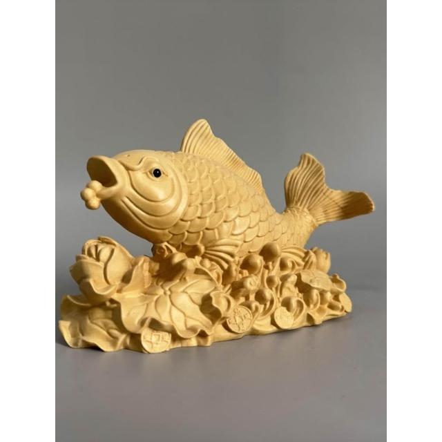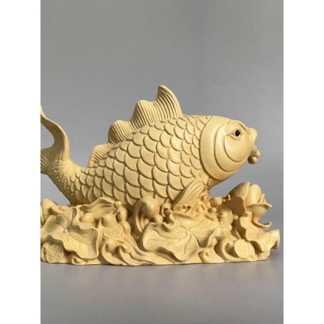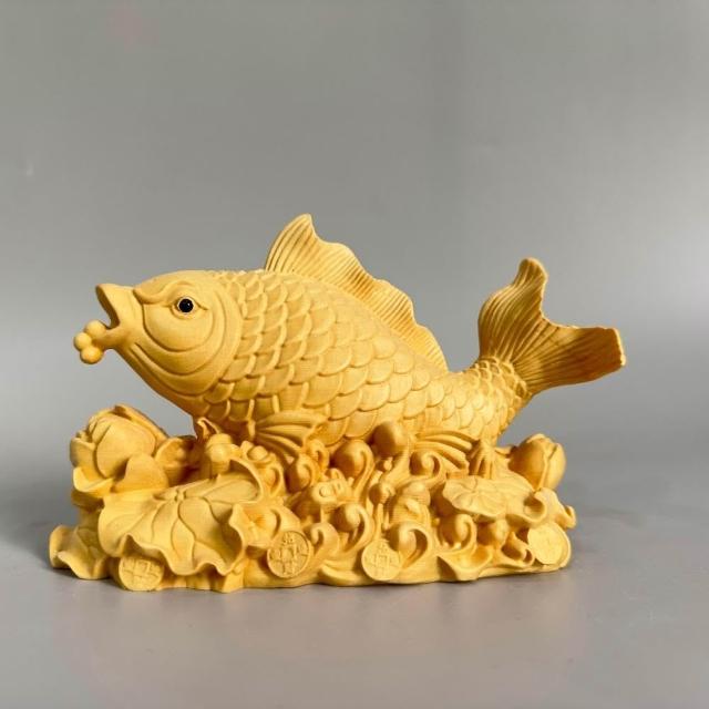 檜木木雕金龍魚擺件魚躍龍門年年有魚辦公室客廳酒櫃裝飾工藝品