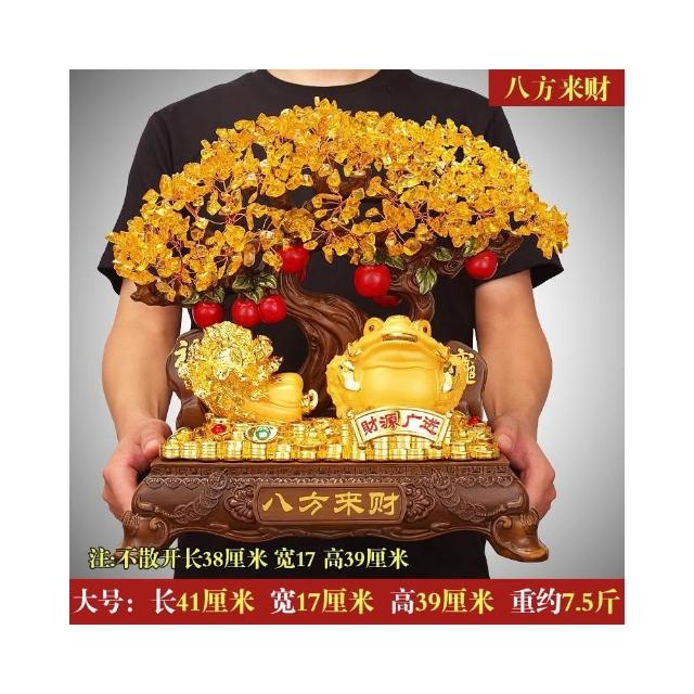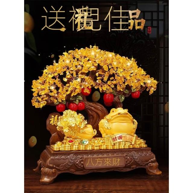 招財金蟾擺件黃水晶搖錢樹發財樹客廳酒櫃裝飾喬遷開業禮品金白菜