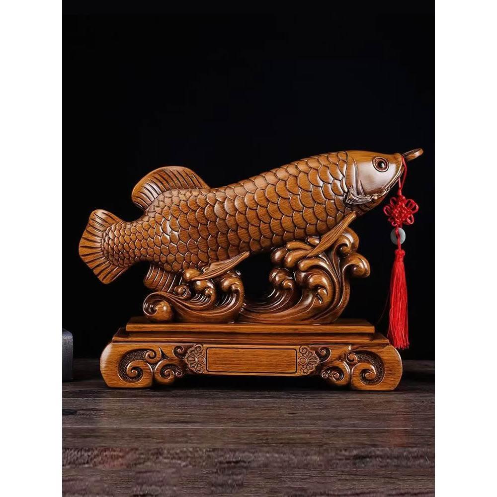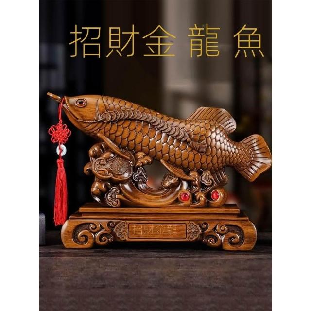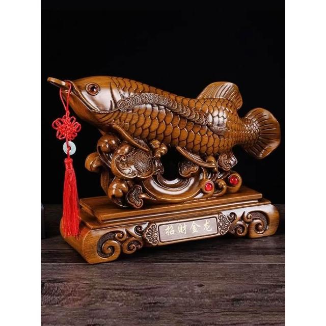 木紋招財金龍魚擺件落地擺件家居客廳裝飾品店鋪風水擺設開業禮品