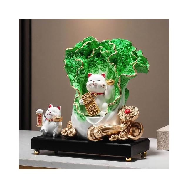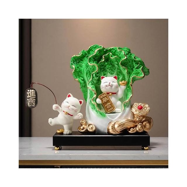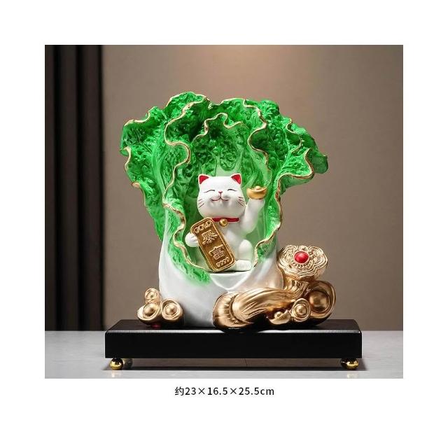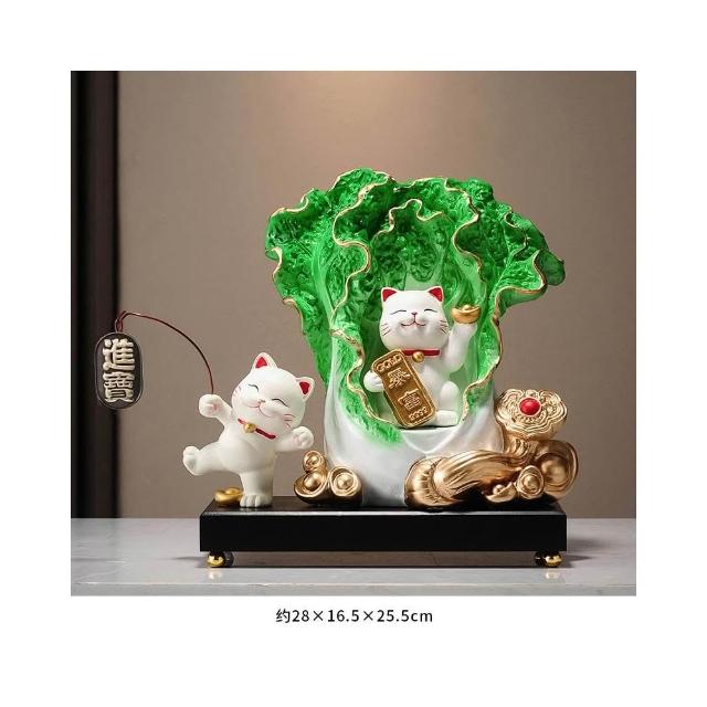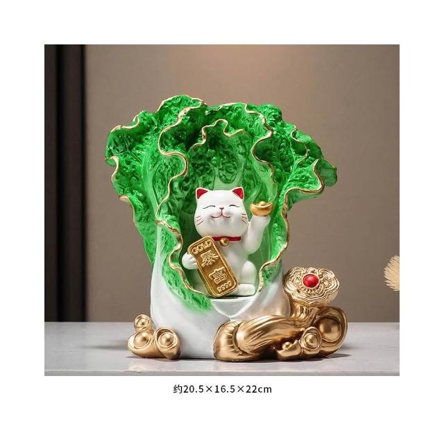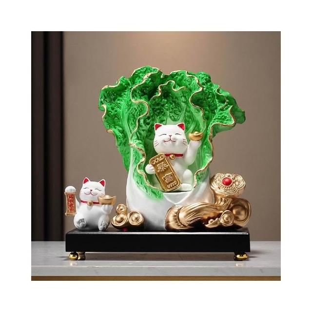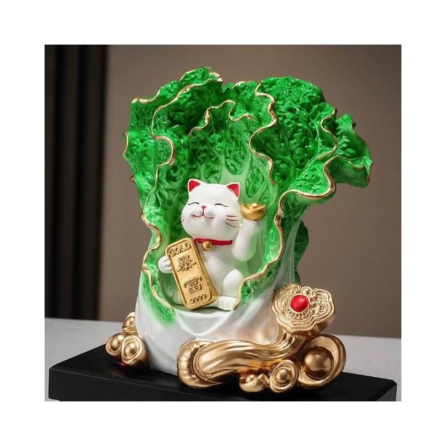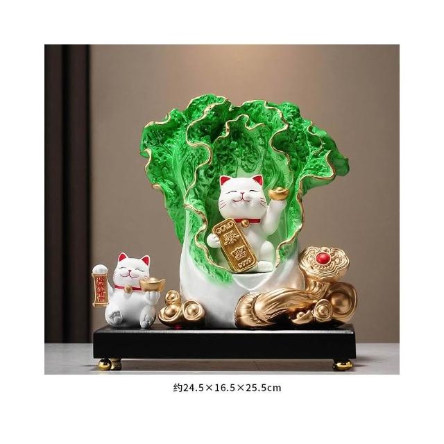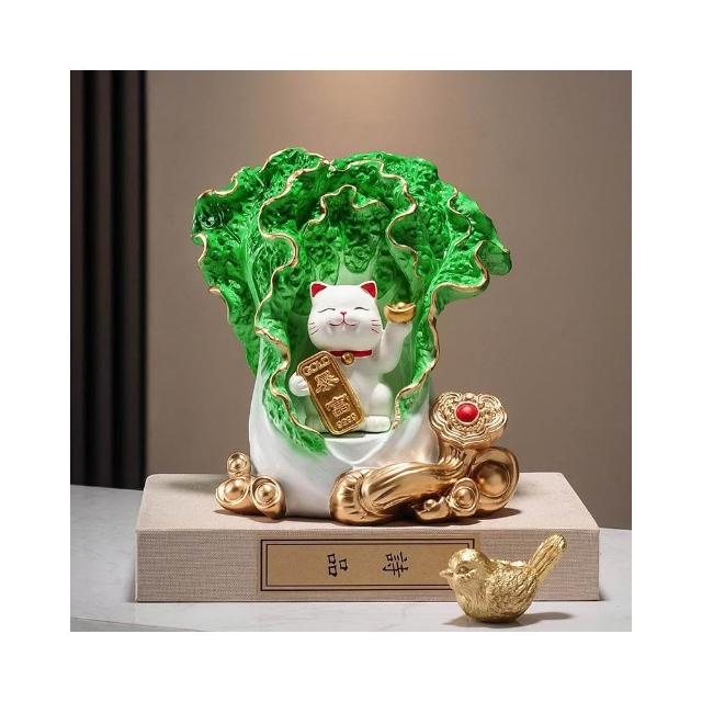 百財如意白菜擺件招財貓客廳辦公室酒櫃收銀臺裝飾品喬遷開業禮物