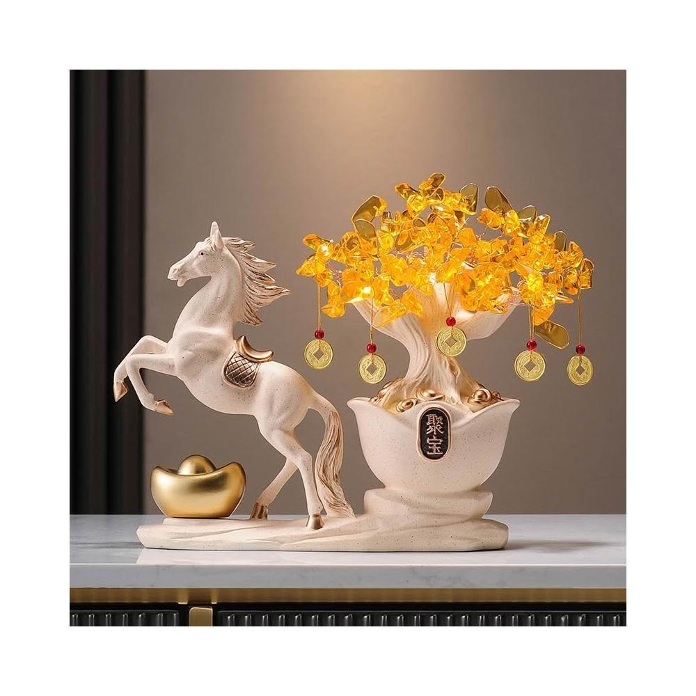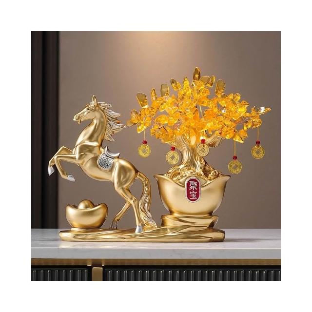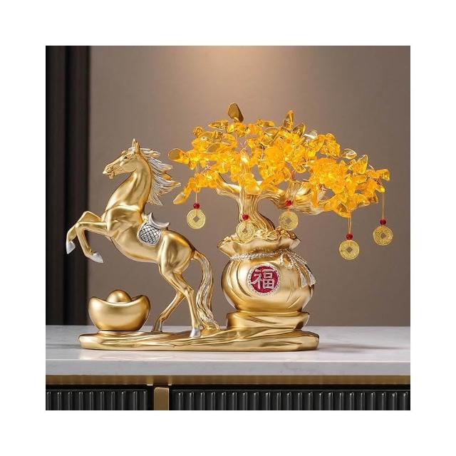 馬到成功發財樹搖錢樹擺件客廳辦公室高檔招財馬裝飾喬遷開業禮品