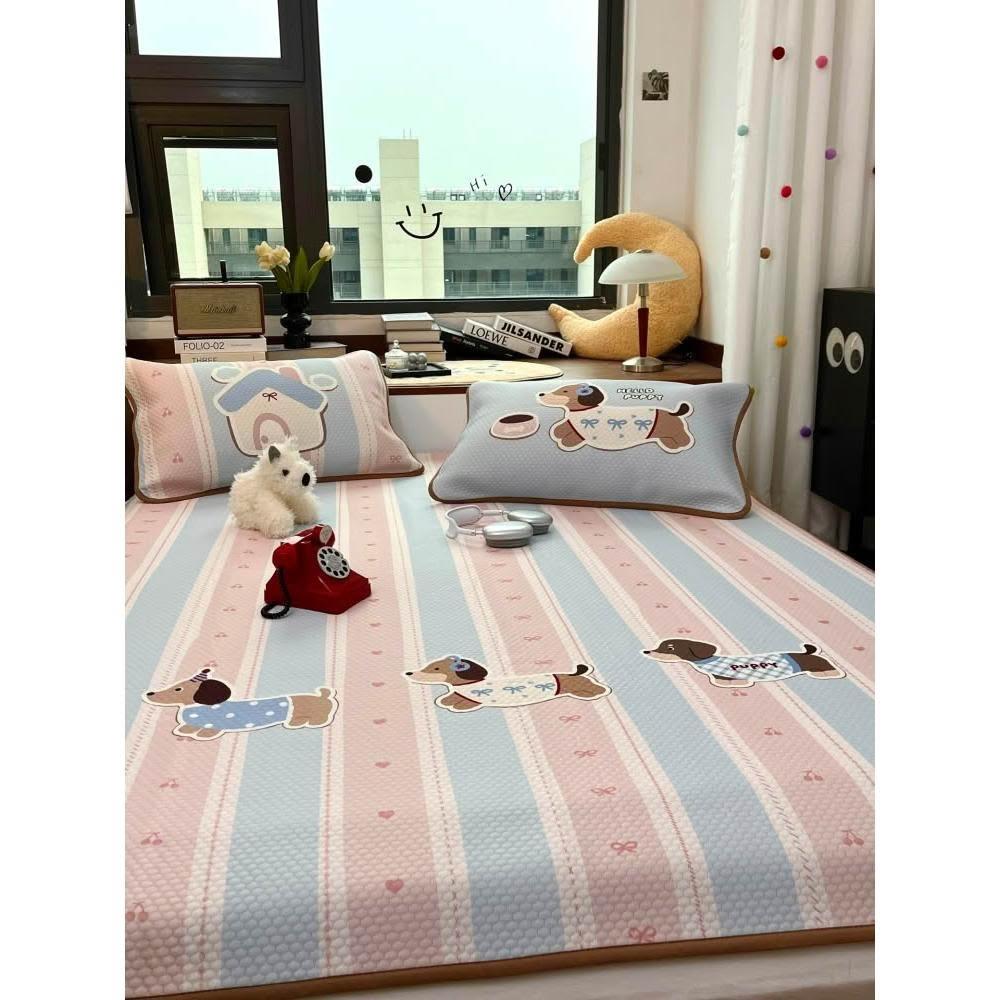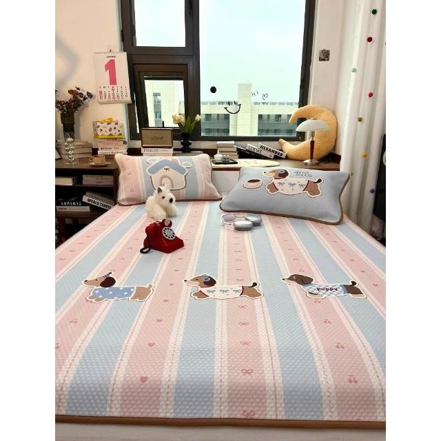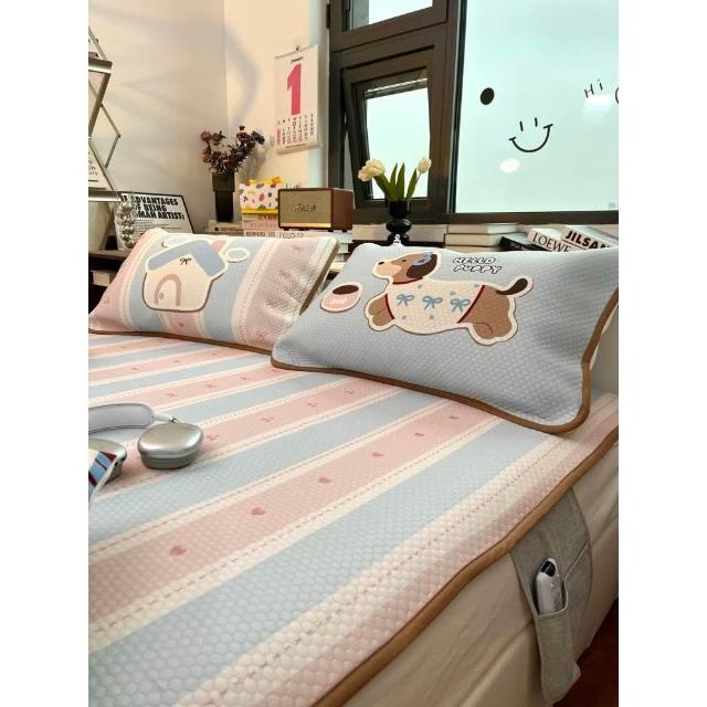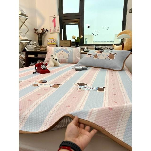 夏季冰豆豆涼感軟涼席三件套條紋1.8m席子家用水洗冰絲席