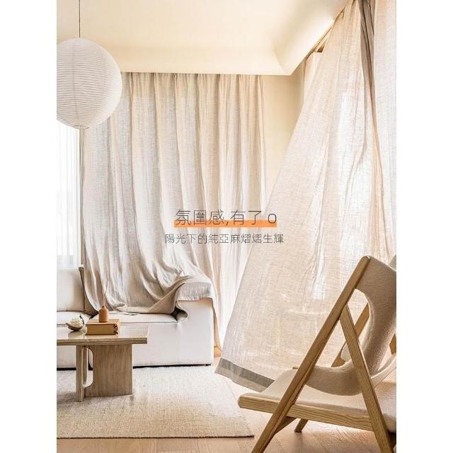 天然純亞麻窗簾現代侘寂北歐法式臥室客廳簡美式落地棉麻窗簾
