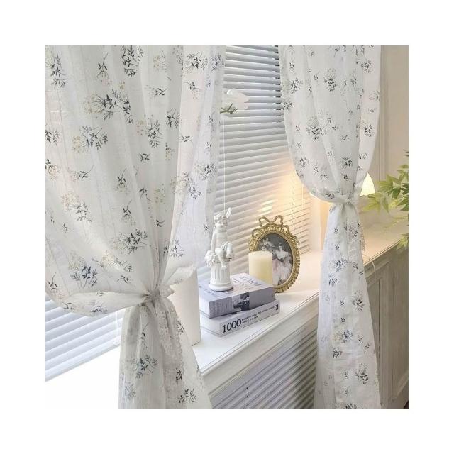 田園碎花小清新窗簾布法式客廳書房免打孔門簾隔斷簾白色半簾短簾