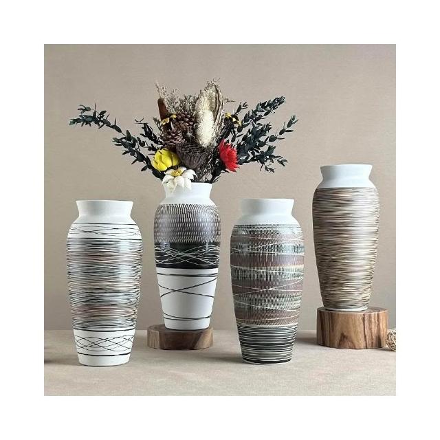 侘寂風粗陶花瓶景德鎮手工陶罐復古陶瓷花器中式禪意插花日式擺件
