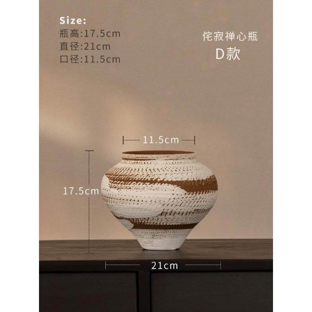 新中式臺面復古粗陶花瓶插花水培鮮花禪意陶罐大號可種樹花盆擺件