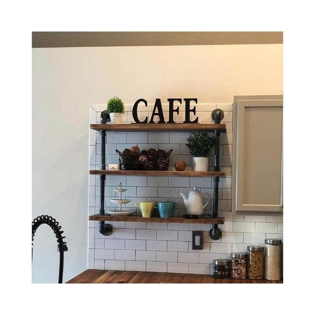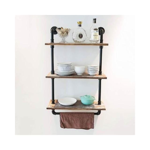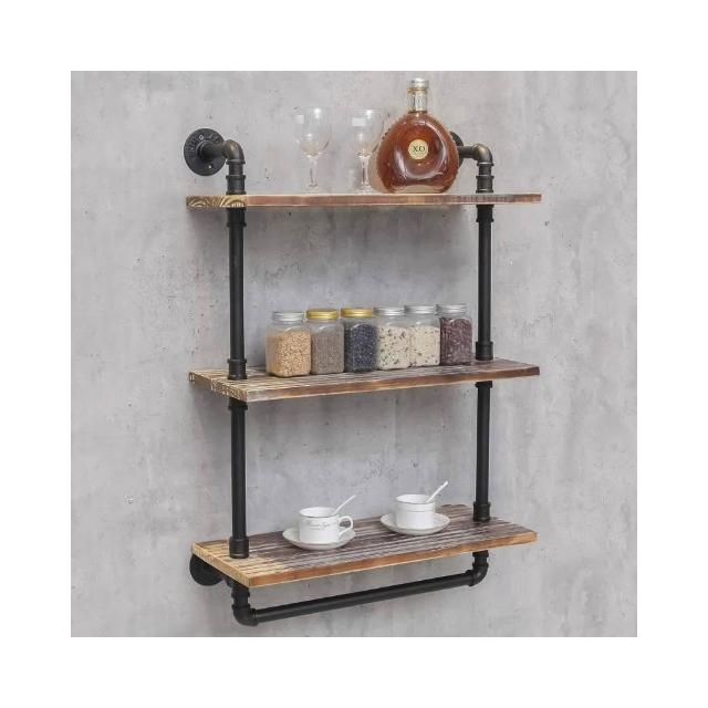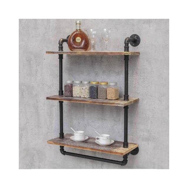 美式創意置物架 客廳廚房家用展示架 復古水管金屬實木壁掛架
