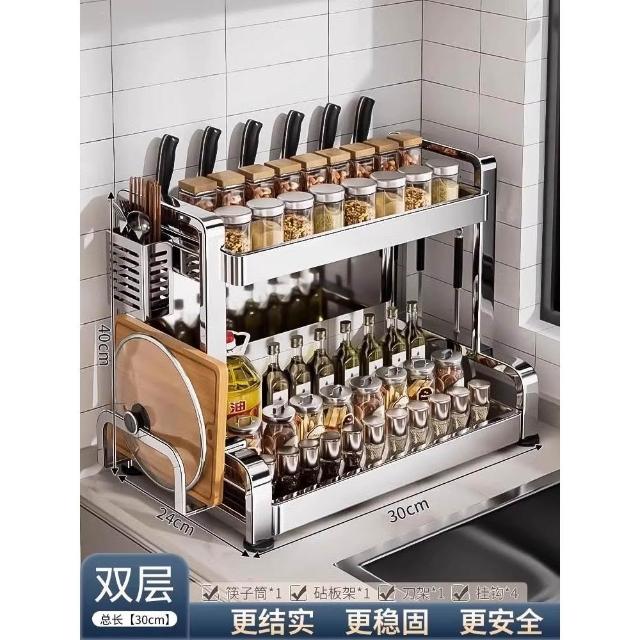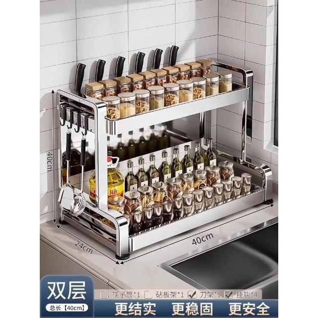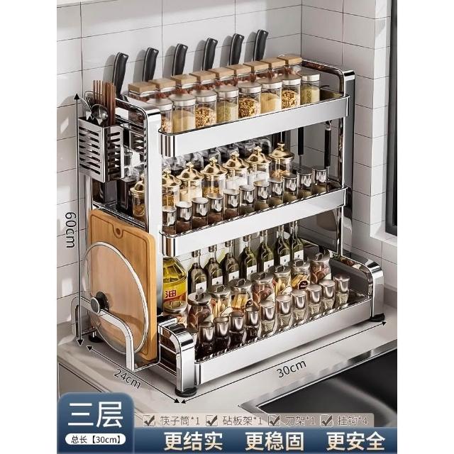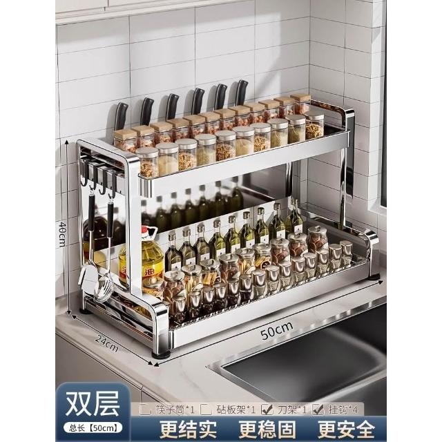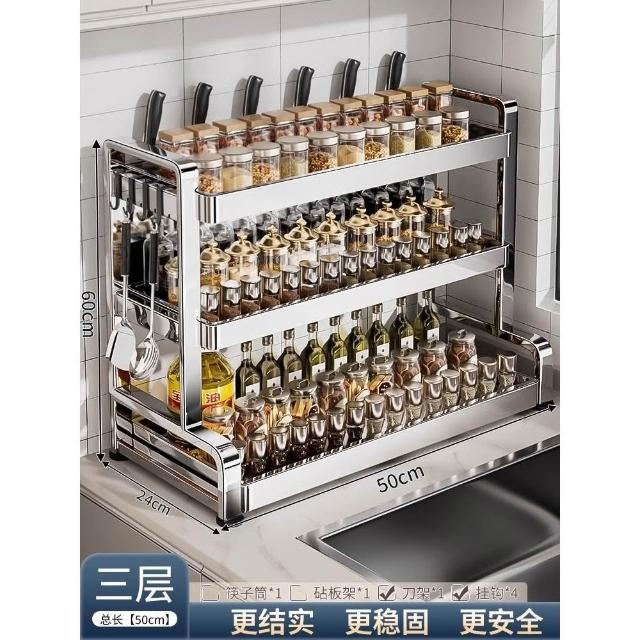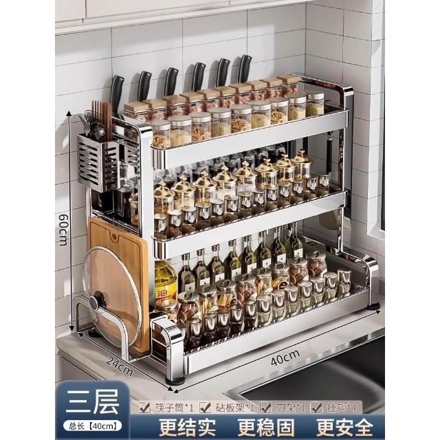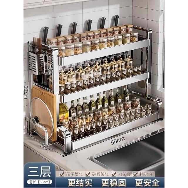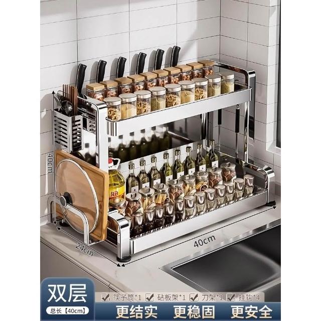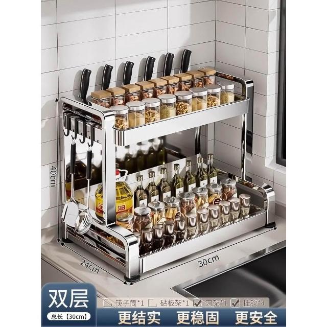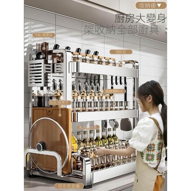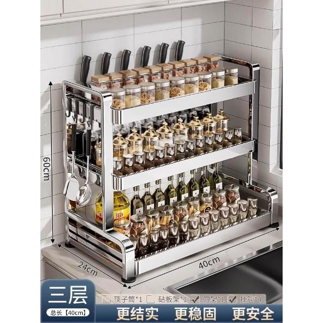 304不銹鋼廚房調味料品置物架多功能臺面油鹽醬醋瓶筷子刀收納盒